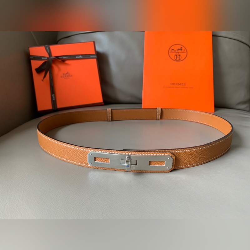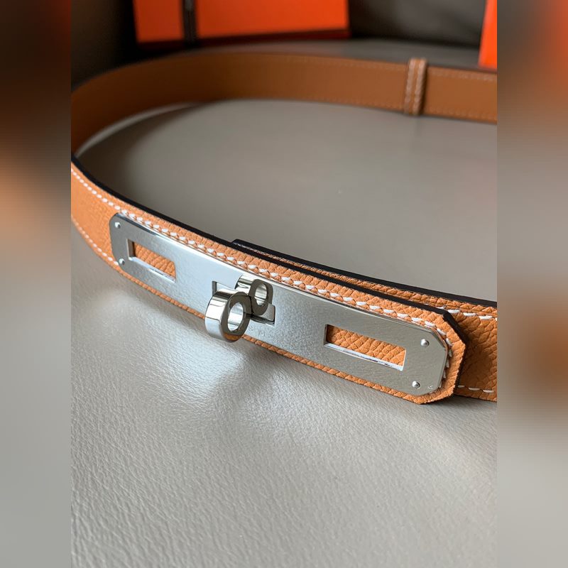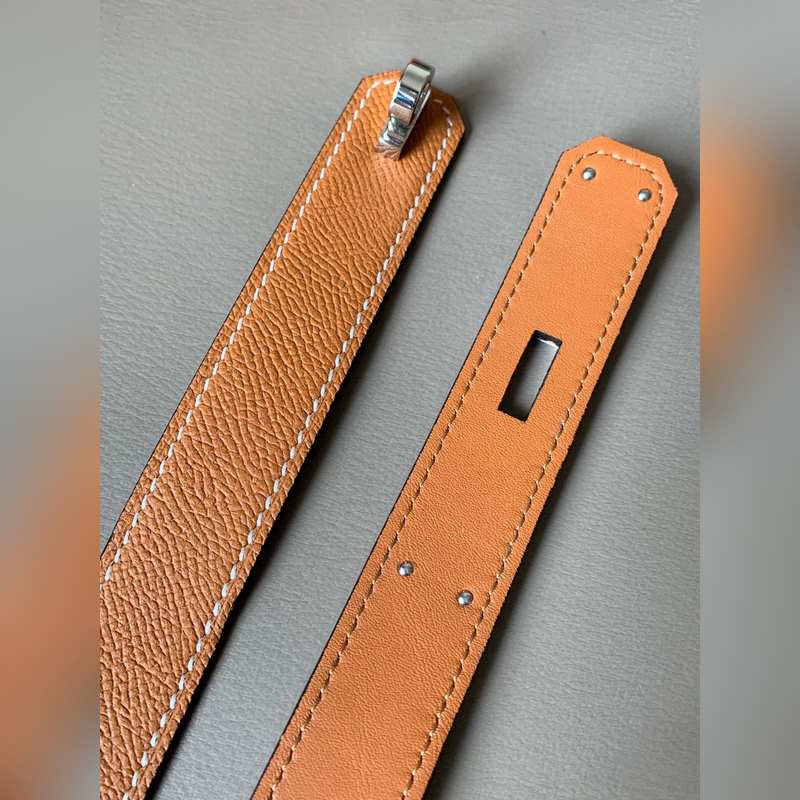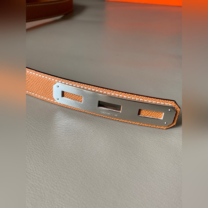 HERMES OKelly 24 belt Soho calfskin belt with palladium-plated Kelly bag style stainless steel buckle.