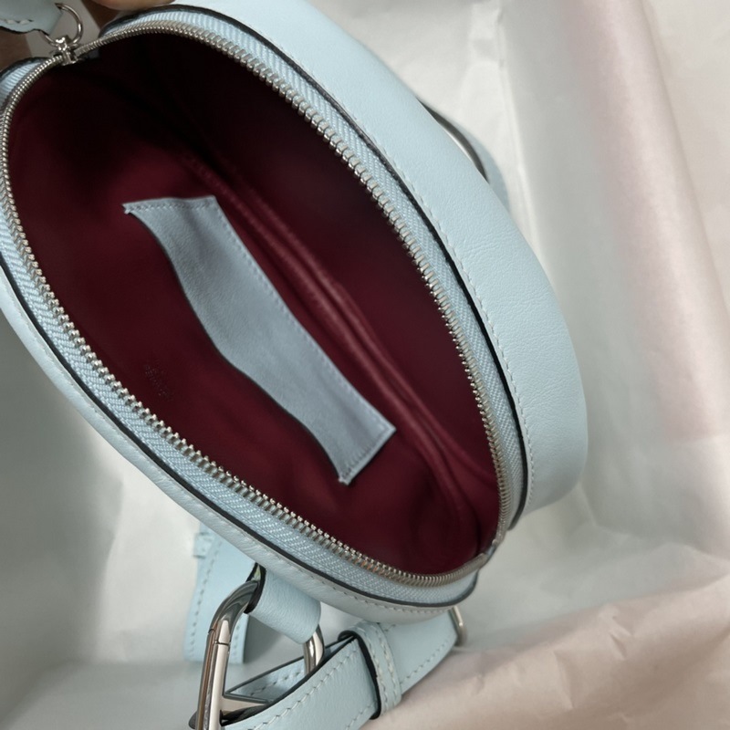 Hermes Pig Nose Waist Bag Haze Blue with Pomegranate Red Swift
