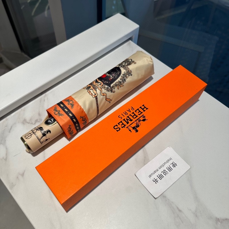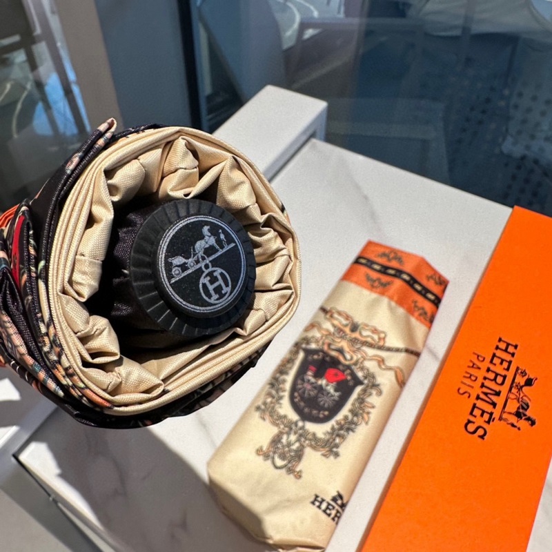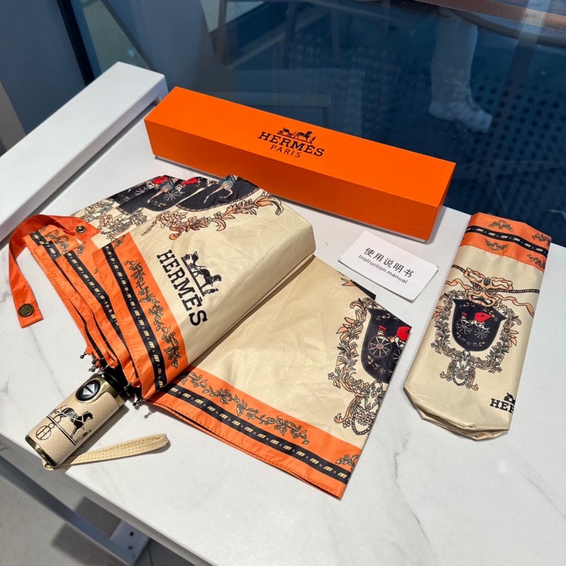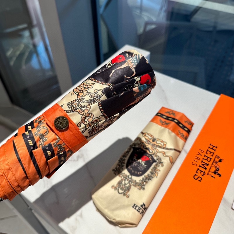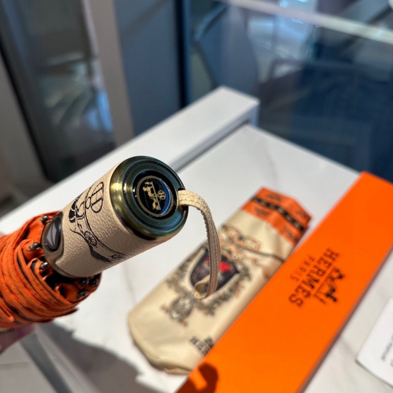 Hermès (Hermès) The ultimate H-family tri-fold automatic umbrella is presented with its exquisite craftsmanship and endless imagination. The new coating technology umbrella cloth brings a surprising shading effect, making the sun protection and heat insulation performance better guaranteed. The quality of the ribs determines the quality of an umbrella. The umbrella frame material is made of alloy umbrella pole and carbon fiber ribs, which are very tough. The first generation of 210T impact cloth sunscreen and water repellent technology blocks 99% of the ultraviolet rays directly hitting the umbrella surface, eliminating summer sunburn. Refreshing travel Even on rainy days, you can enjoy the most elegant stroll