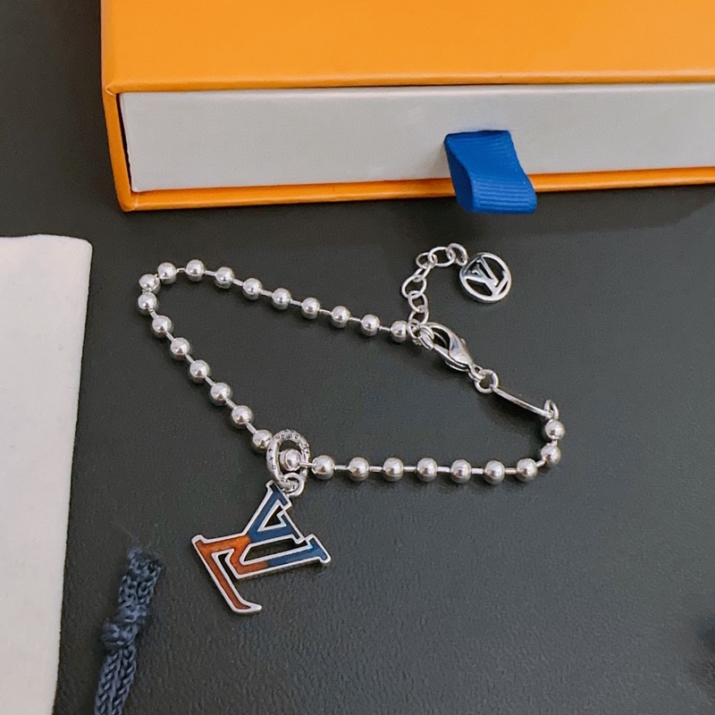 High-quality Louis Vuitton LV bracelet, original goods, counter mold, retro fashion essential, can be worn by men and women, couples’ style, rock punk Thai silver style, retro elements, trendy and versatile, the same necklace as the official website, the chain is higher grade, celebrity classic bracelet, Cuban chain series retro silver bracelet
