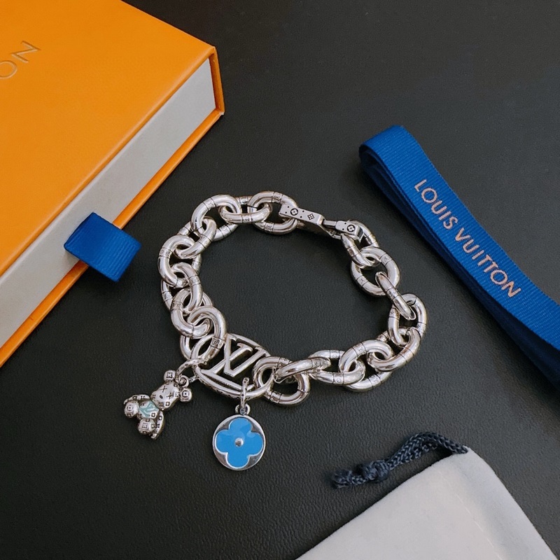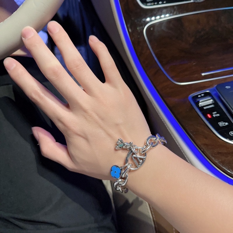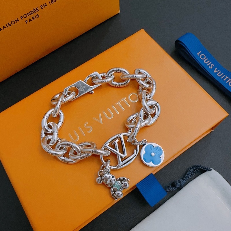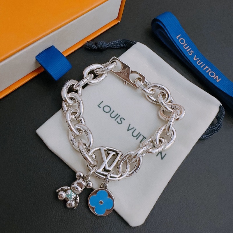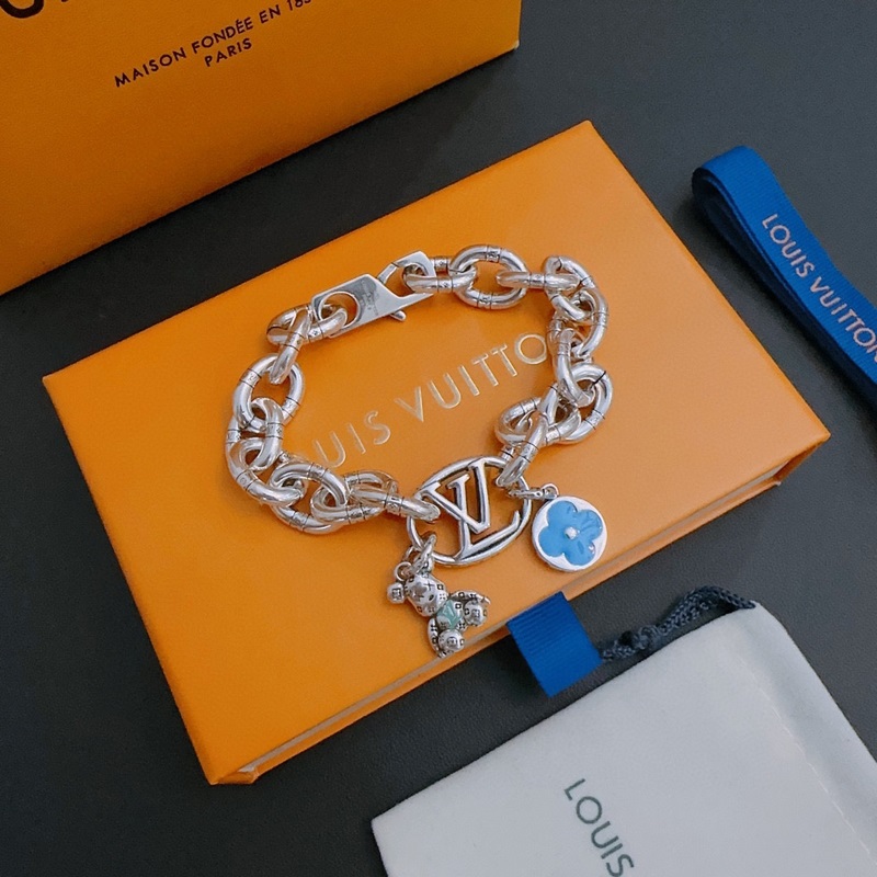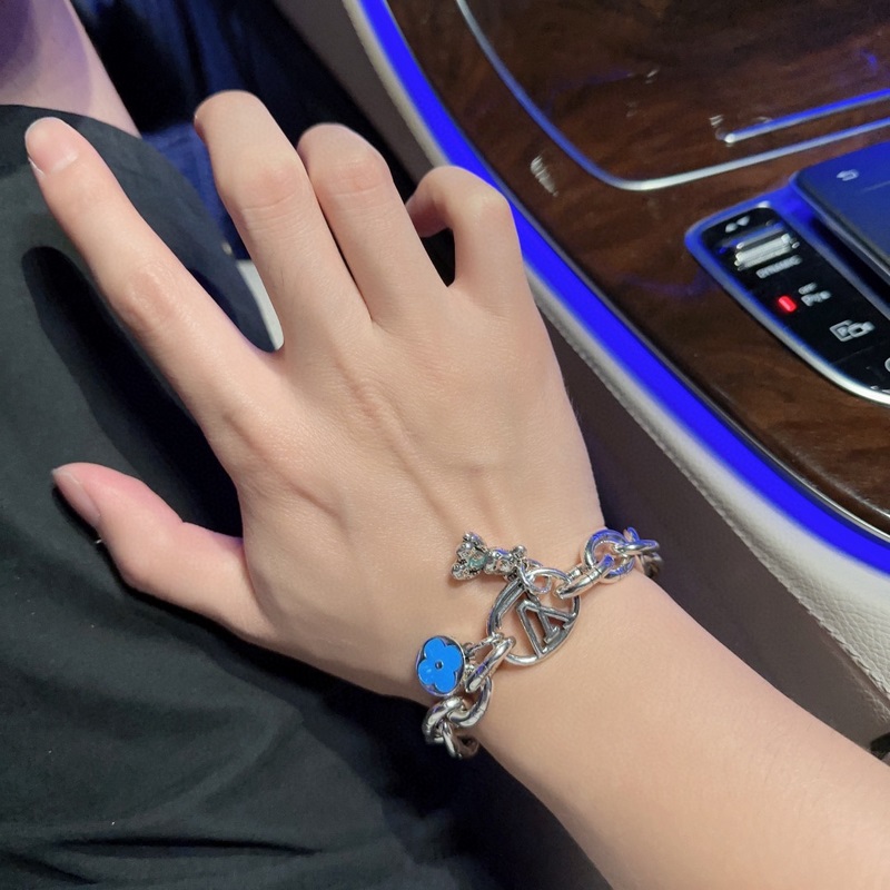 High-quality LV Louis Vuitton bracelet, original goods, new molds from the counter, retro and fashionable, can be worn by both men and women, same style for couples, rock punk Thai silver style, retro elements, trendy and versatile, same necklace as the official website, the latest chain is of higher grade, celebrity classic bracelet, Cuban chain series retro silver bracelet