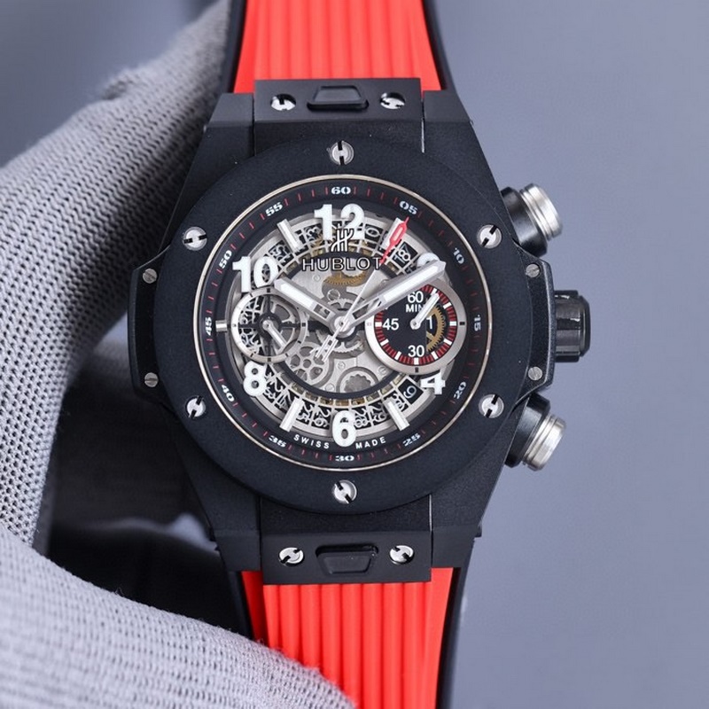Hublot HUBLOT – Fearless and brave, punching hard, referred to as “HUB”, Big Bang Element Material Chronograph v2 version The case is made of imported 316 stainless steel material, with explosive design sense Equipped with 7750 modified “HUB1242” automatic movement, instant chronograph start and one-key flyback, perfect restoration of original functions, secondary weight increase and automatic swing, to achieve more stable travel time and ultra-low repair rate The strap is made of natural oak rubber strap, which is super waterproof, soft and comfortable. The watch mirror is made of natural sapphire glass, which is wear-resistant and scratch-resistant, transparent and flawless As a young brand, Hublot re-paints a youthful vitality with its flamboyant personality and unique design under high-end manufacturing, and will feel the freedom of youth with everyone