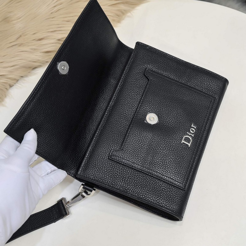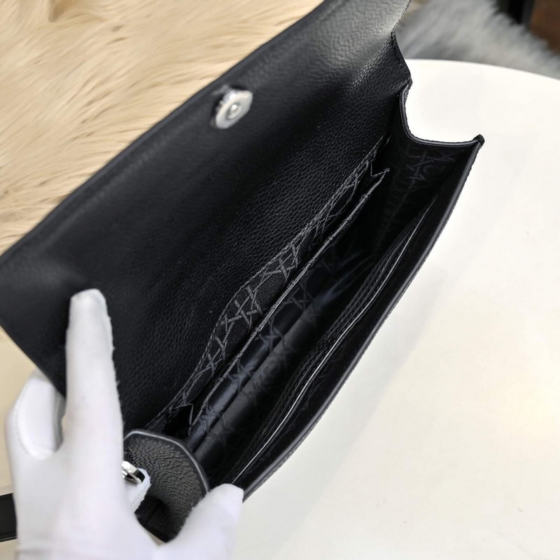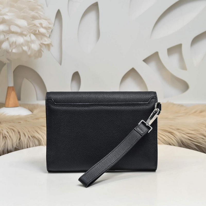 Made of imported grained calfskin Fastened with magnetic snaps Anti-slip pockets and silver logo applique on the front Detachable wrist strap Top-quality hardware Novel style Unique charm Versatile and casual Look cool on the street Size: 24.5/18/5cm