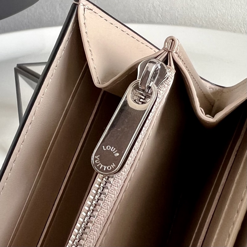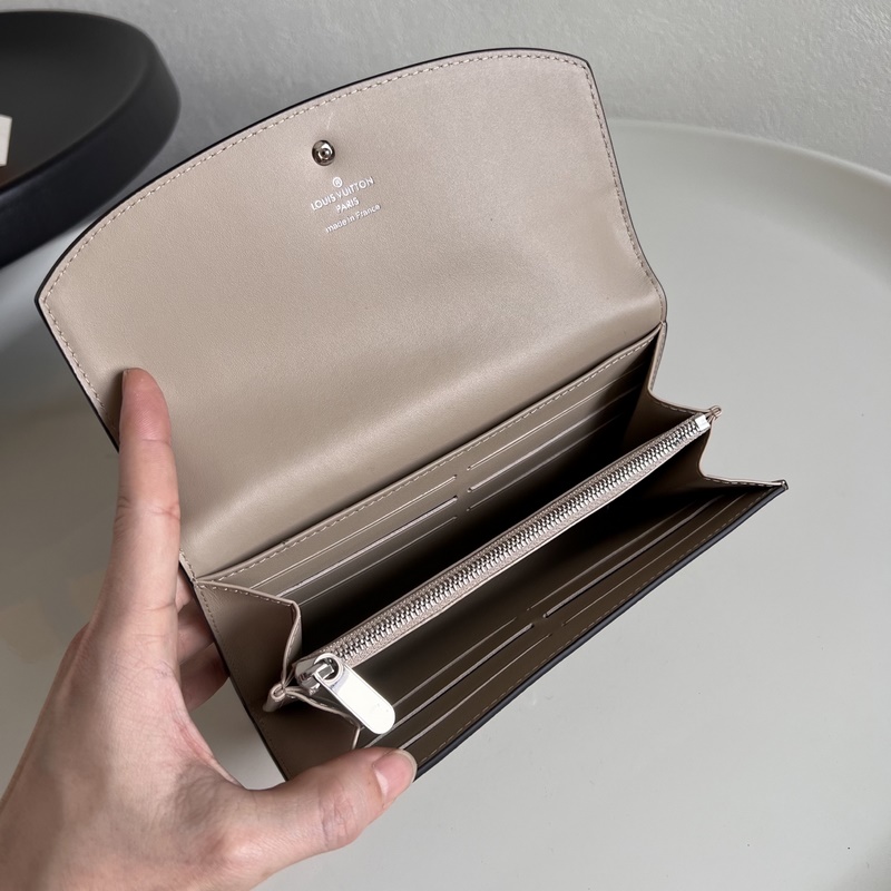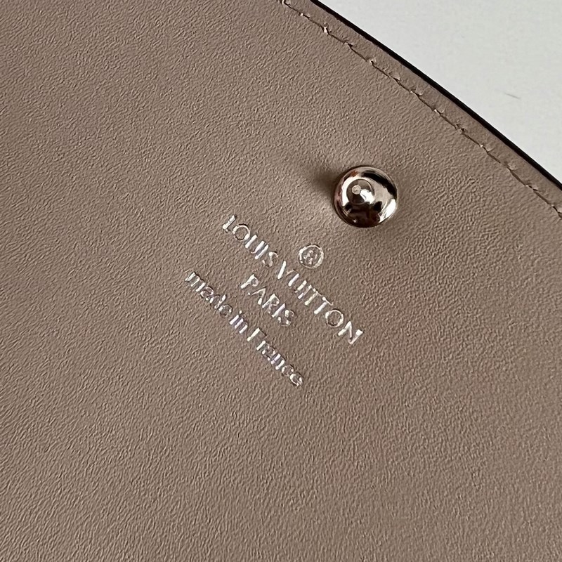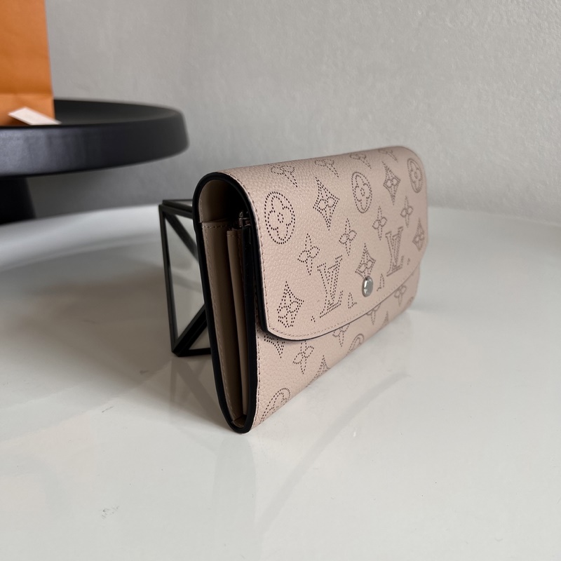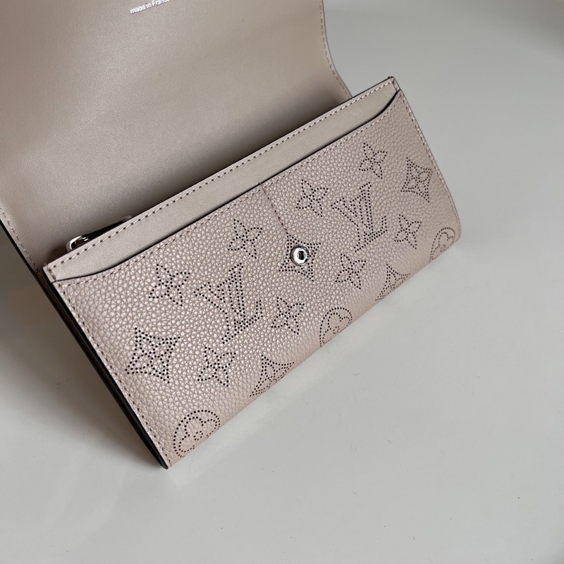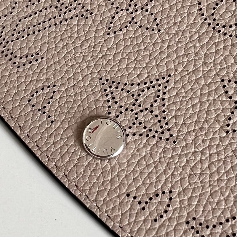 Chip version M60143 Khaki Made of luxurious Mahina leather, this Iris wallet is a sophisticated and charming accessory. The extremely soft calfskin is added with a perforated Monogram pattern and equipped with a low-key snap closure. The size is 12×19×2