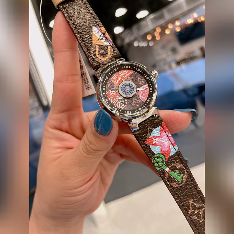 Iv Louis Vuitton’s latest model for 2023, a unique printed leather belt with a presbyopic watch is really good. The older I get, the more I like classic models. This watch is Iv’s classic case and strap are both classic presbyopic, low-key temperament, the back of the watch is a letter logo, the most exquisite design is that the outer ring of the dial is surrounded by the LOUIS VUITTON letters, which means gold (in) and turnover (earning). There are exactly 12 letters corresponding to a timetable hand, which is very exquisite