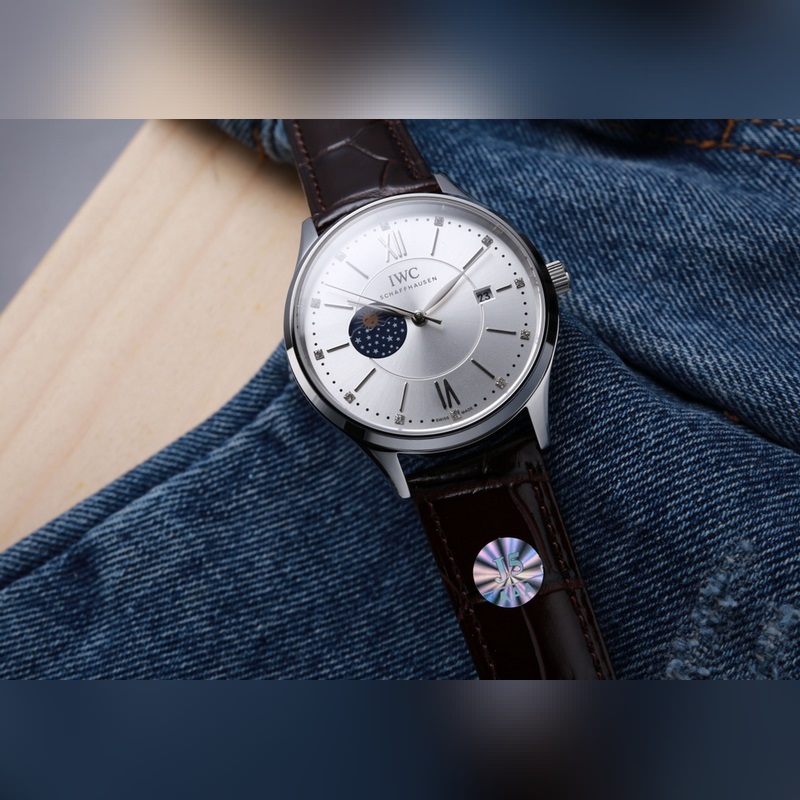Production, IWC, Sun, Moon and Stars series, equipped with a customized version of the original imported 8217 movement (0 return and 0 after-sales), 24-hour/true moon phase display, 4/5-digit calendar display… Double sapphire glass mirror, Italian cowhide, watch diameter 39X10m.5 degree waterproof