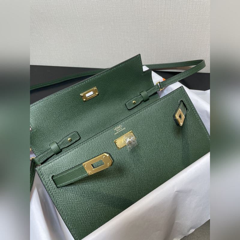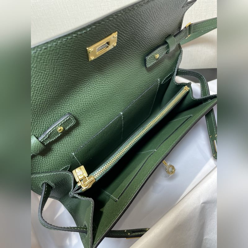 Kelly woc hot-selling model, everyone must have it, practical, multi-purpose, details picture Color British green, leather epsom spot (size: length 20.5 x width 11 x thickness 2 cm)