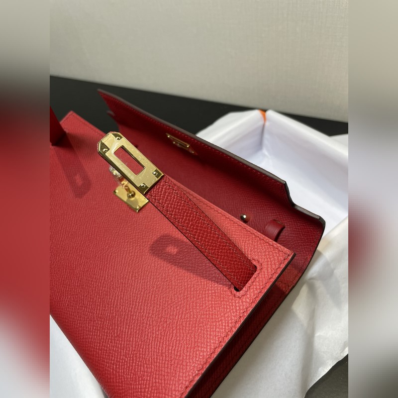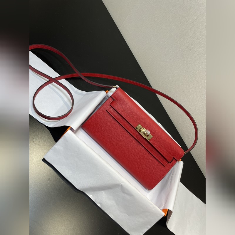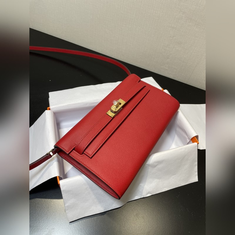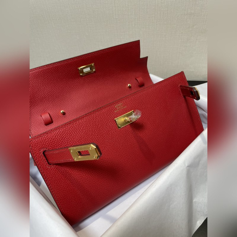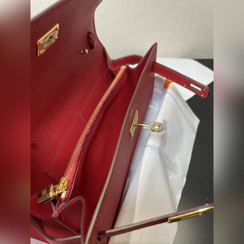 Kelly woc hot-selling model, everyone must have it, practical, multi-purpose, details picture, bright red color, leather epsom, in stock (size: length 20.5 x width 11 x thickness 2 cm)
