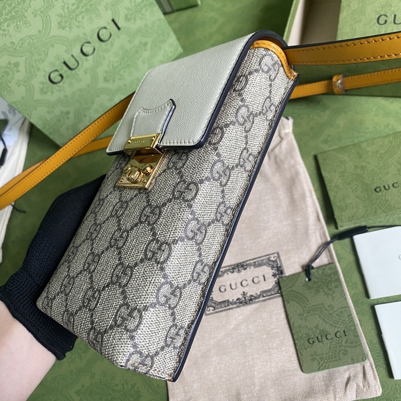 《With a full set of original green box packaging》 The classic king of lock chain bag series has a new member~ The iconic small lock of the mobile phone bag is the main feature, using original cowhide + G flower fabric. The three-in-one color shows the temperament of a mobile phone bag.