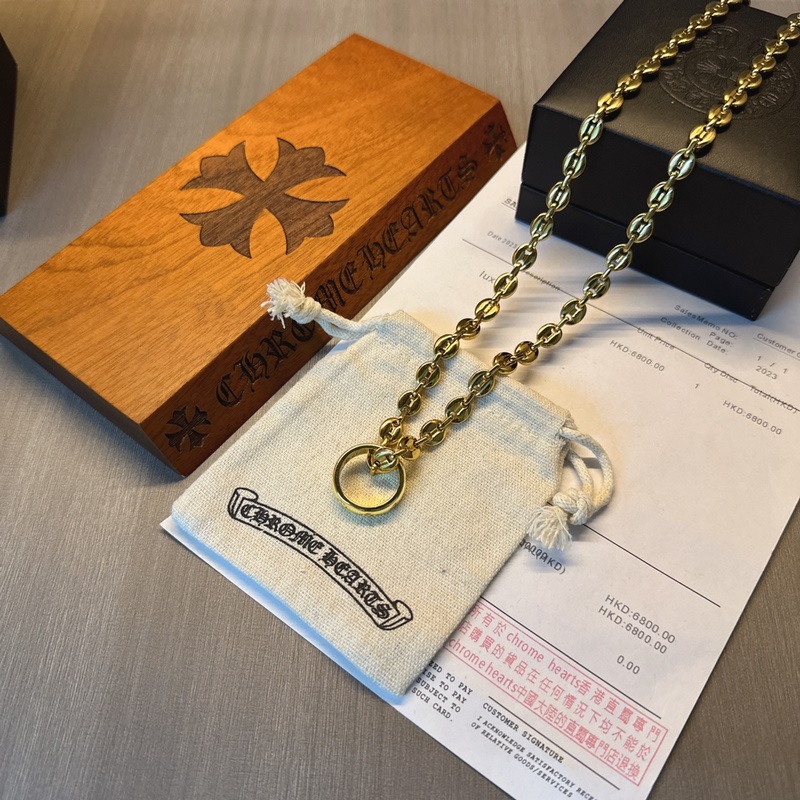 Chrome Hearts gold necklace, different patterns and design styles present a unique cross. The Scout flower is the symbol of Chrome Hearts, so it is more enduring. The genuine Chrome Hearts is of the same quality. Retro and old gray oxygen degree. Seiko version ~ a must-have for fashion. Both men and women can wear it. Fashionable, rock punk style, retro elements, couples’ same style