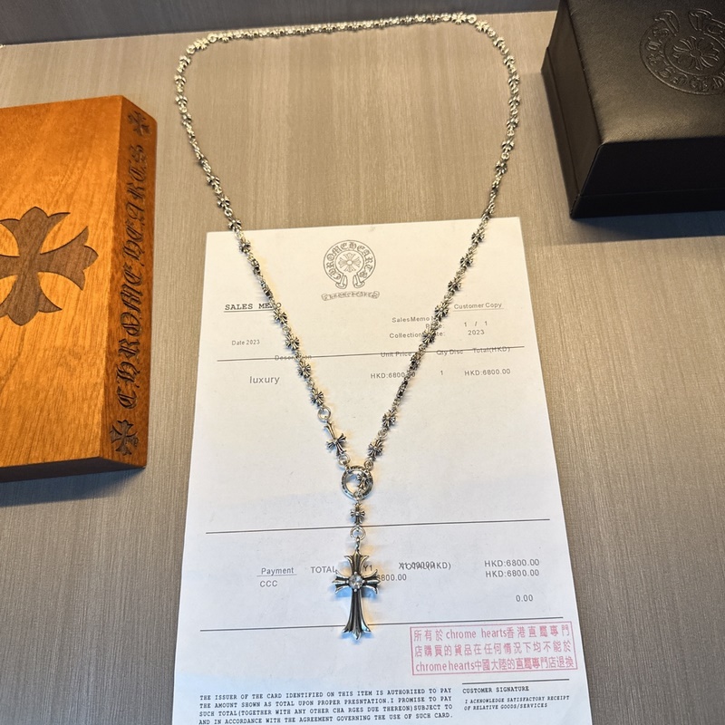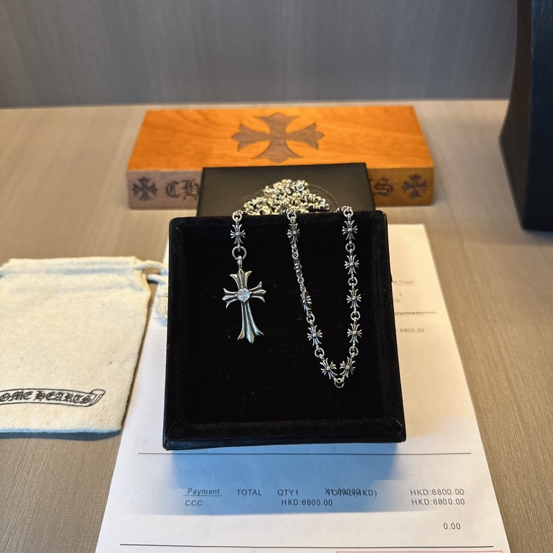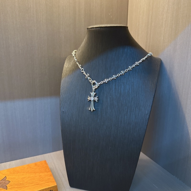 Chrome Hearts necklace, with different patterns and design styles, presents a unique look. The cross and scout flower are the symbols of Chrome Hearts, so it is more enduring. The genuine Chrome Hearts are different from the ordinary light version on the market. The quality is matched with the version. The degree of gray oxygen is retro and old. Seiko version ~ a must-have for fashion. Both men and women can wear it. Fashionable, rock punk Thai silver style. Retro elements. Couples’ style
