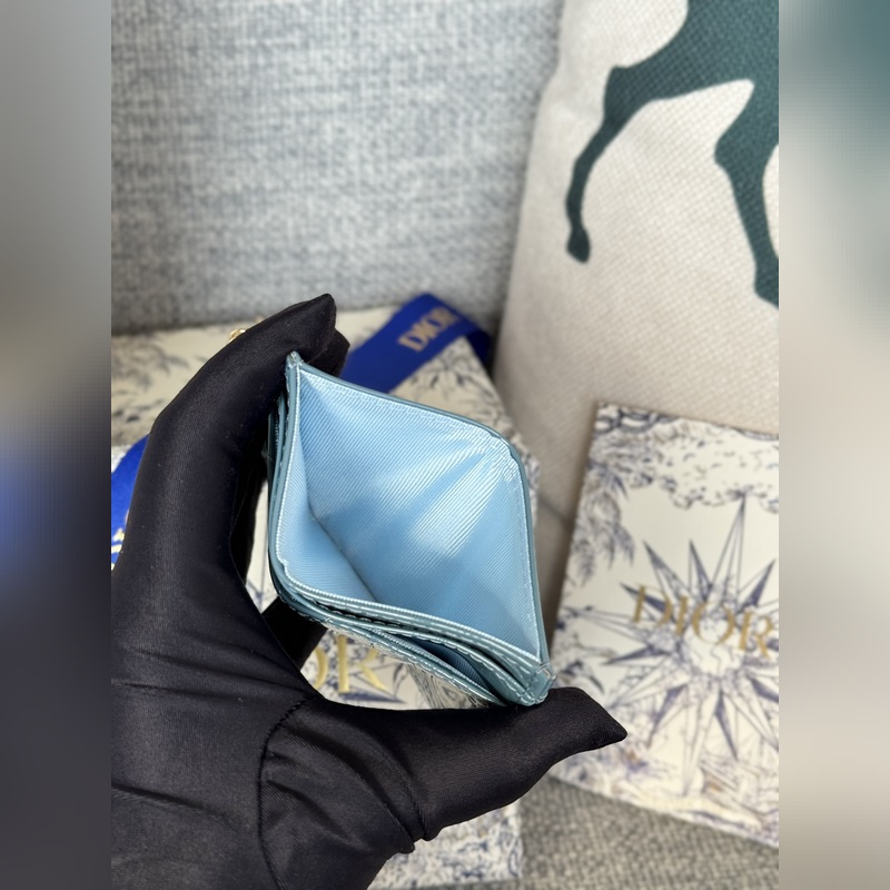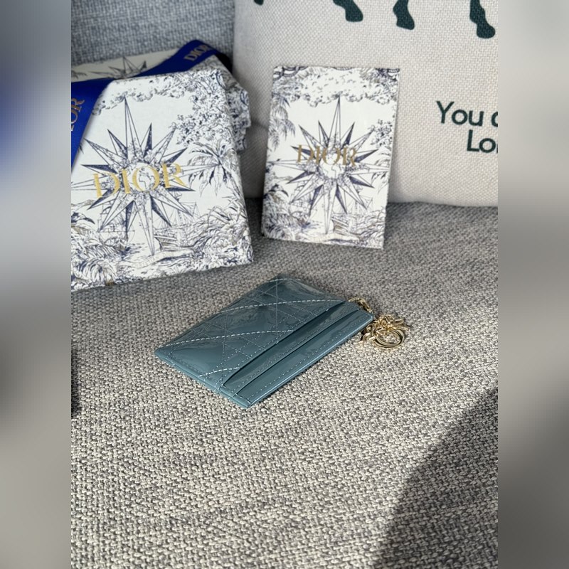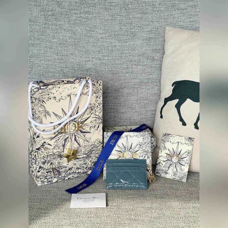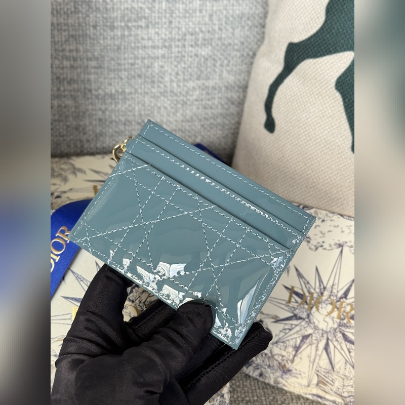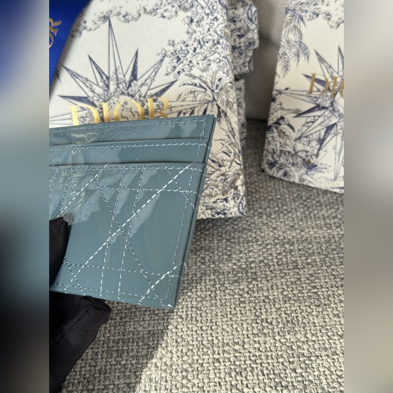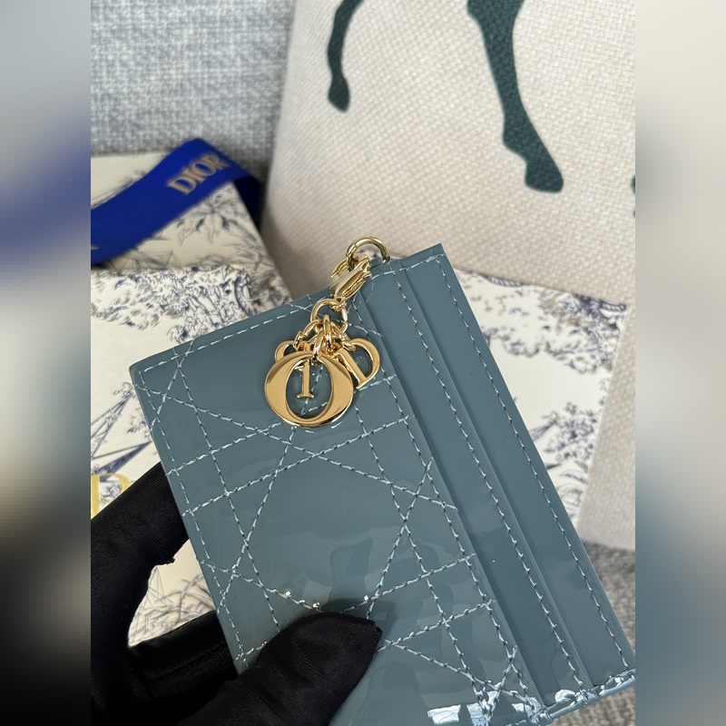 This Lady Dior five-grid card holder is a new product this season, elegant and practical. Crafted with cloud blue patent leather, decorated with rattan pattern stitching and embellished with a detachable D.I.O.R. pendant. Elegant and sophisticated, with five card slots, suitable for all occasions, can be paired with other Lady Dior