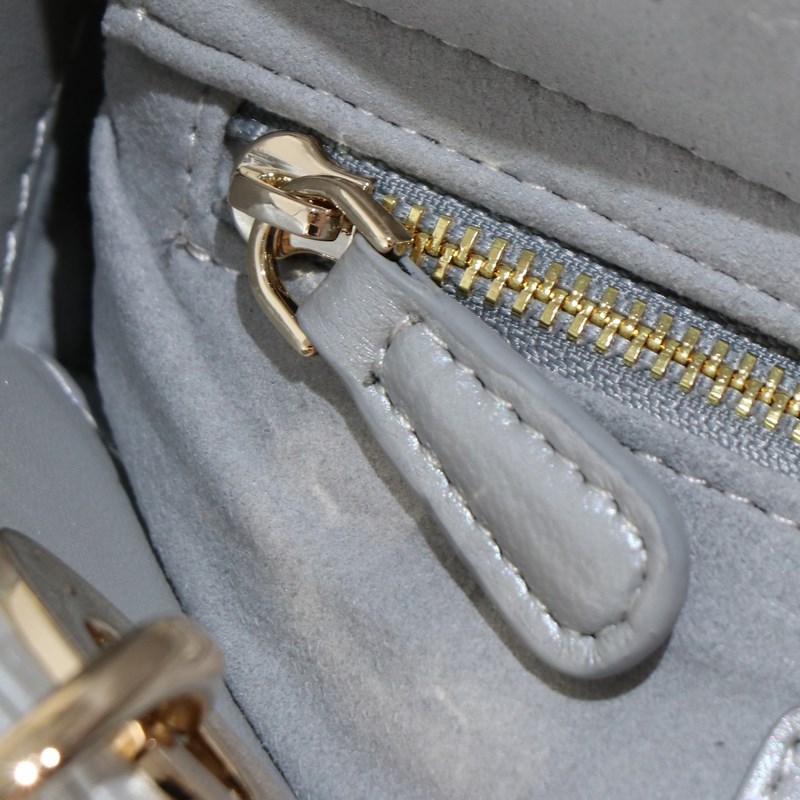 Crafted in pearl grey lambskin, with striking quilting details in cannage topstitching, the chic and elegant design is timeless.