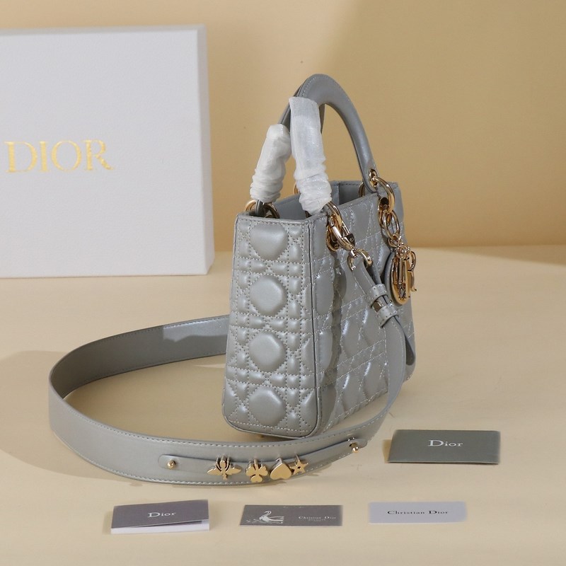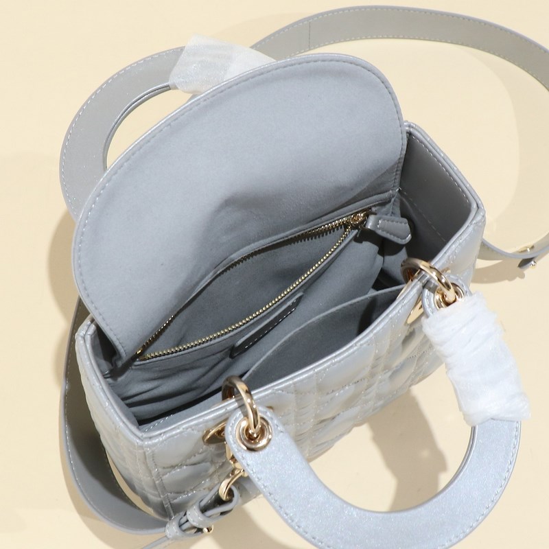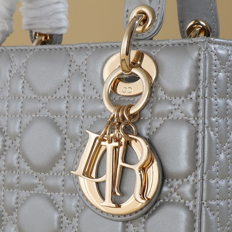 Exclusive Channel Lady Dior Bag Four-grid Lady Dior Bag Pearl Grey Lambskin Gold Buckle