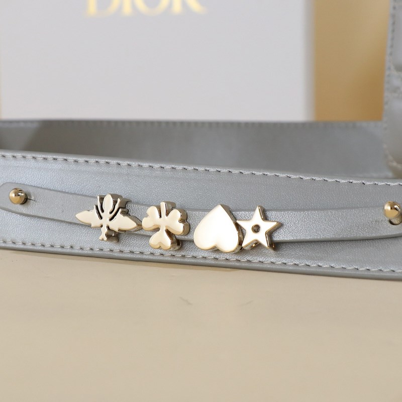The light gold-finished metal d.i.o.r. charm adds an elegant touch. Small size, unique design, shoulder strap can be decorated with badges to show personality, can be carried by hand or crossbody.