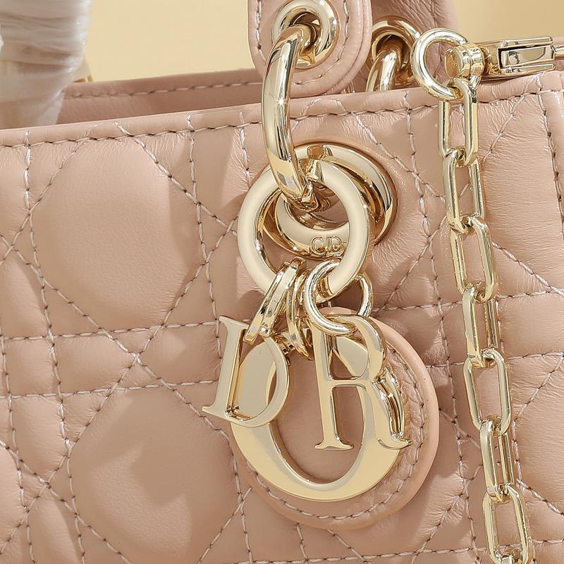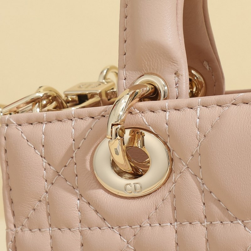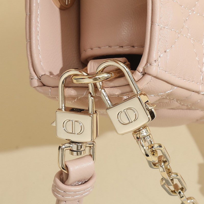 This Lady D-Joy handbag highlights the minimalist aesthetic of the Lady Dior collection, epitomizing Dior’s profound insight into elegance and beauty. Crafted from pink lambskin, it is decorated with cannage stitching and is enhanced by a light gold-finished metal d.i.o. r. charm, which adds a touch of agility to the exquisite silhouette. The small model is equipped with a detachable chain shoulder strap and an adjustable and detachable leather shoulder strap. It can be carried by hand, on the shoulder or crossbody, making it an ideal choice for everyday look.