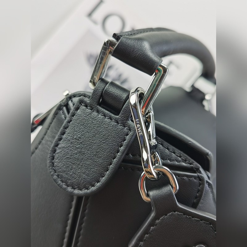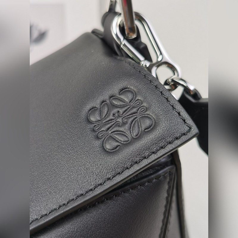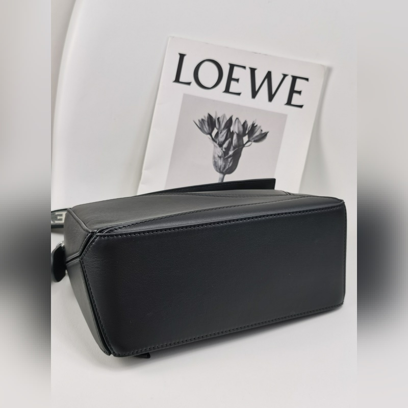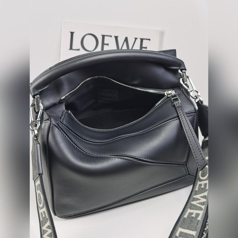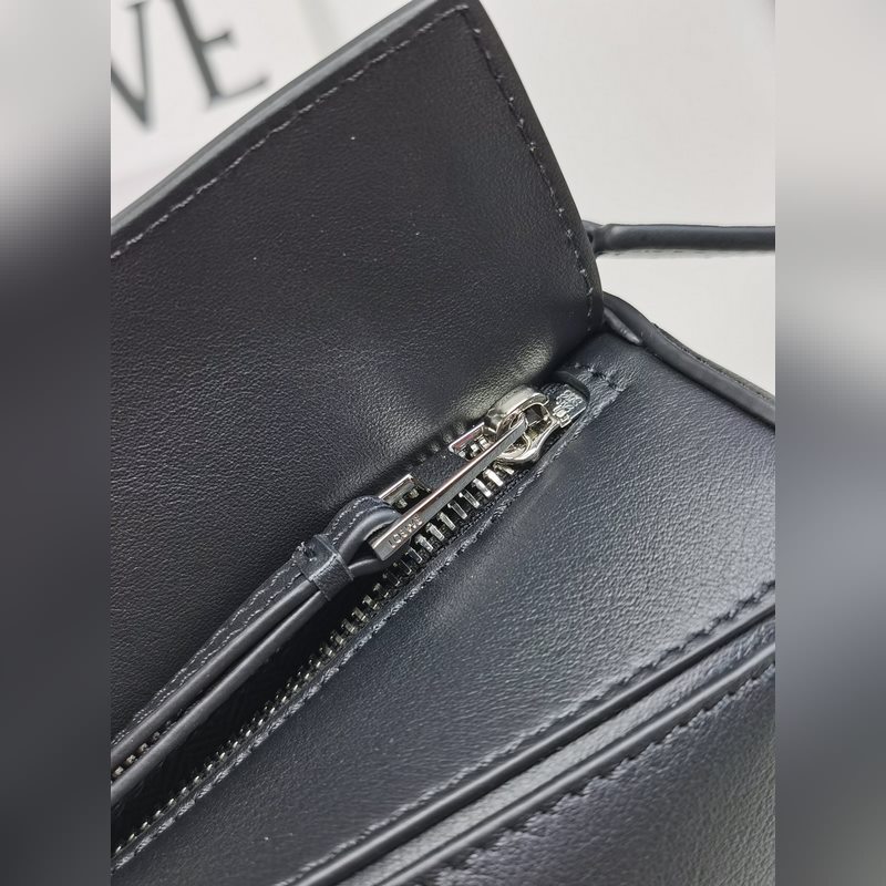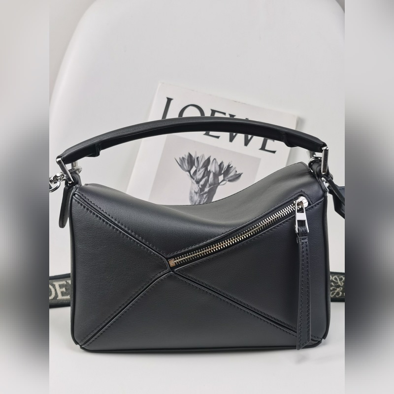 The debut handbag launched by the home * The rectangular shape and precise cutting technology create the unique geometric lines of the Puzzle * This small version is made of satin cowhide leather Comes with a removable Loe*we jacquard shoulder strap This small Puzzle can accommodate, for example, a large wallet, all sizes of mobile phones and sunglasses, shoulder or crossbody * Hand or top handle carry * Shoulder strap is adjustable and detachable * Zipper closure with cowhide zipper pull * External zipper back pocket and one internal slip pocket Herringbone cotton canvas lining Anagram embossed