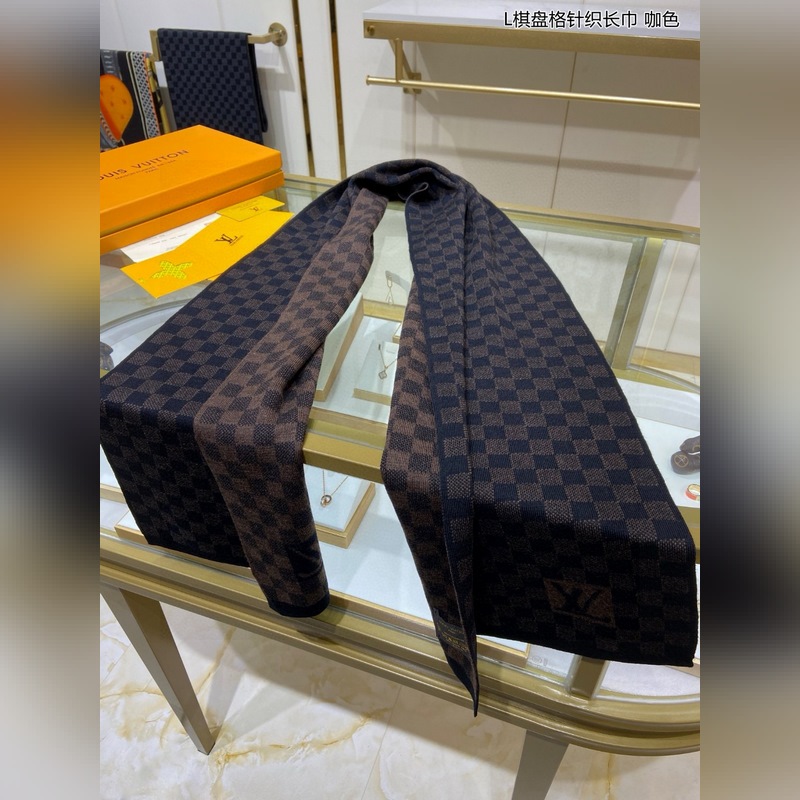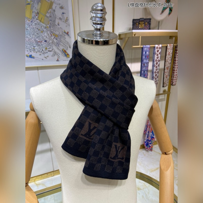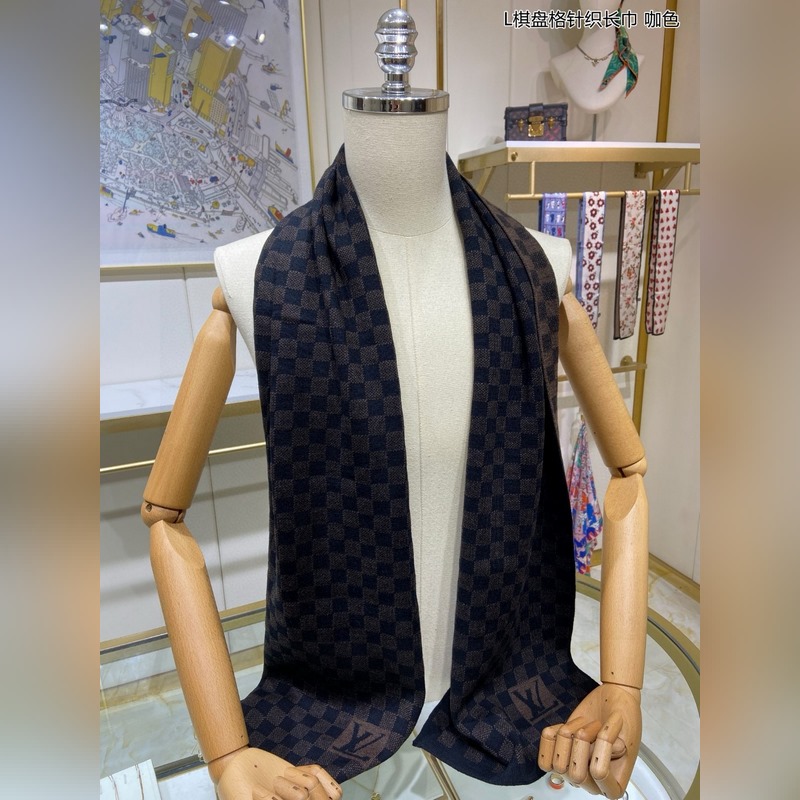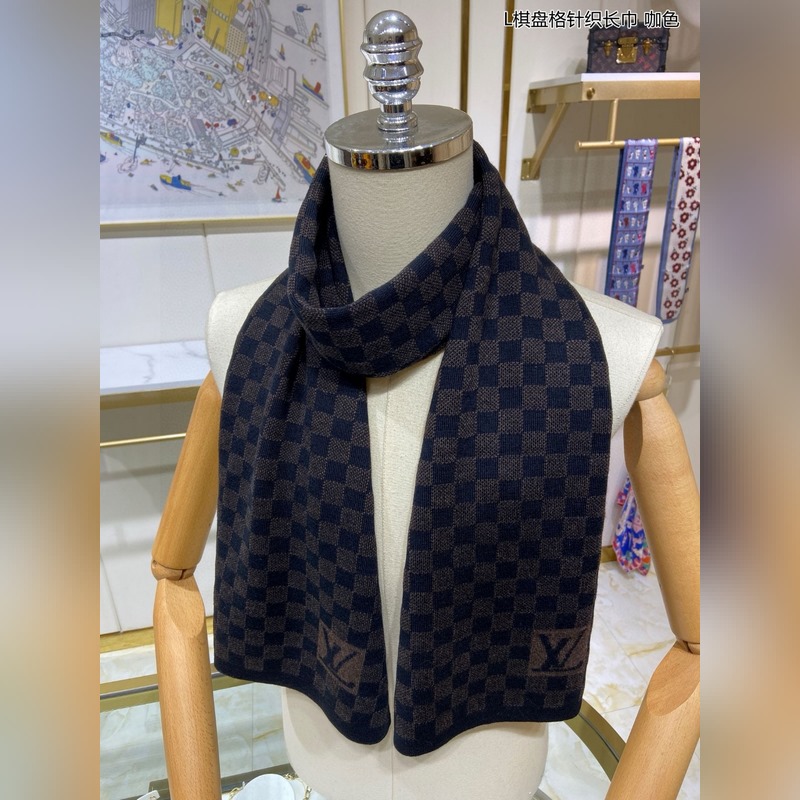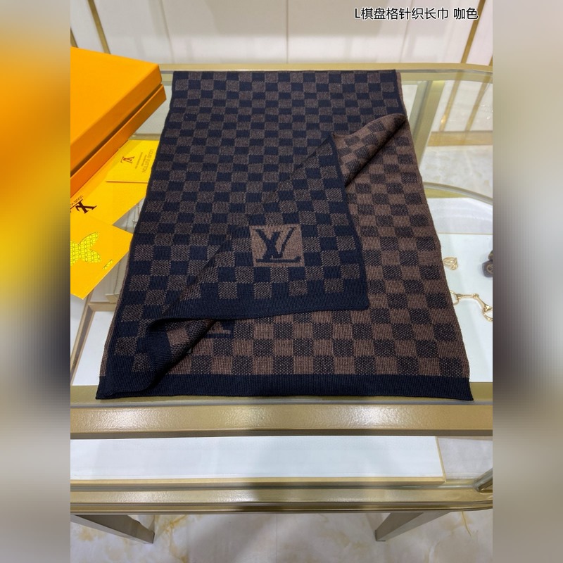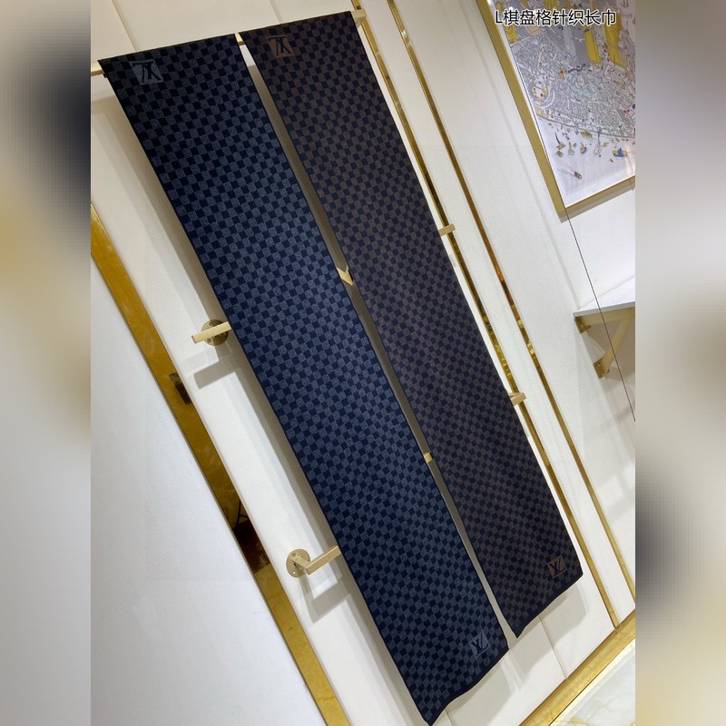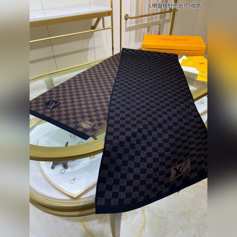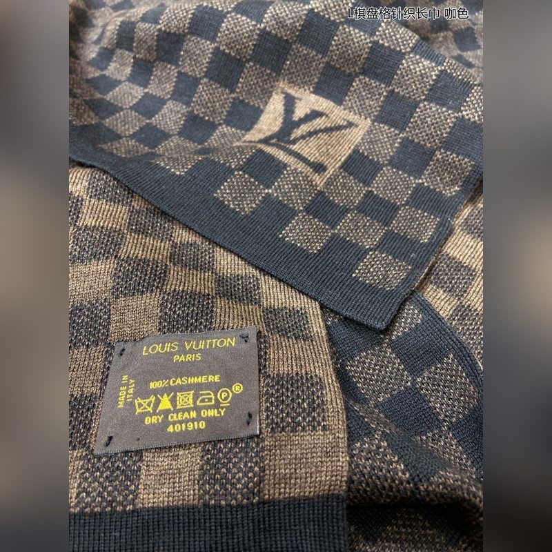 New models are available at the same time as the counters. The new L checkerboard knitted long scarf from LV features a striking classic Damier checkerboard pattern and oversized LV letters, with rustic trims. Soft cashmere creates a luxurious texture. Highly recommended. Be quick. The price is really good. This size is not too big or too small, and it is very easy to match. The quality is super good. You will understand the high-end quality when you get it. The high-end details are what you see. A heavyweight offer. VIP customers must buy it. 100% cashmere, size: 32*170cm