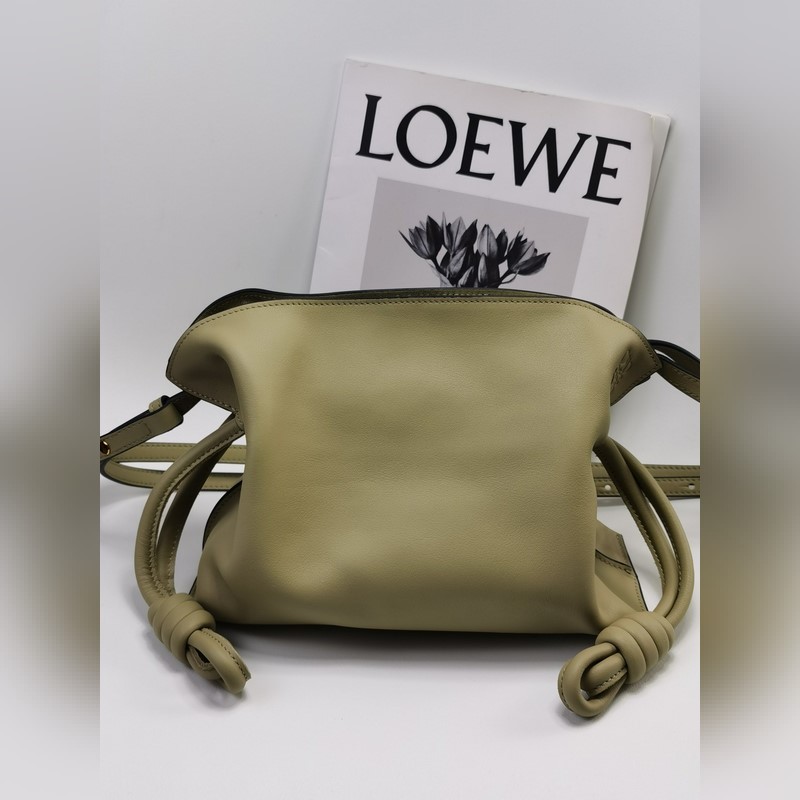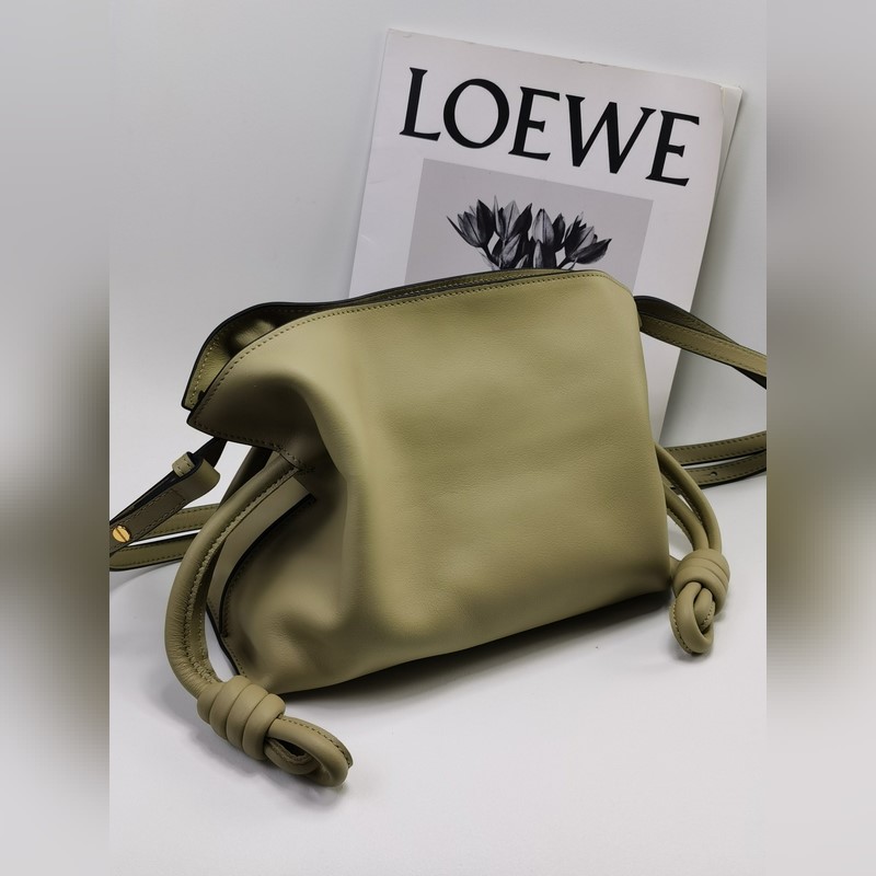 Loewe Mini Flamenco 11046S Original Leather Clay Green Knot Bag