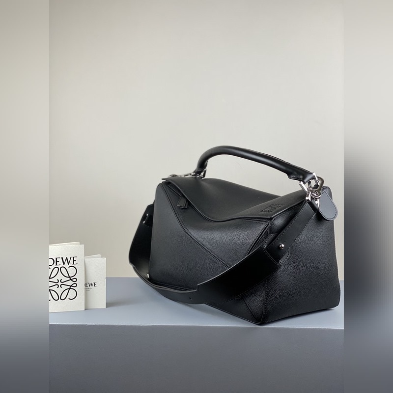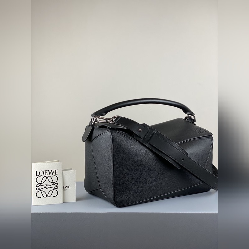 Loewe Puzzle Lychee Black Shoulder Bag Handbag