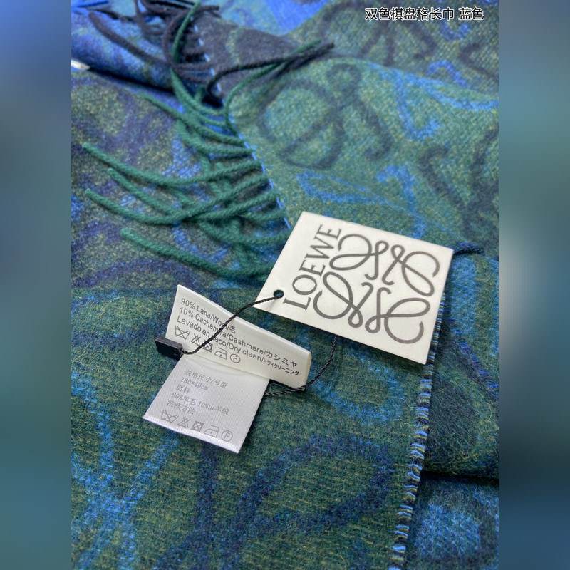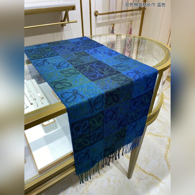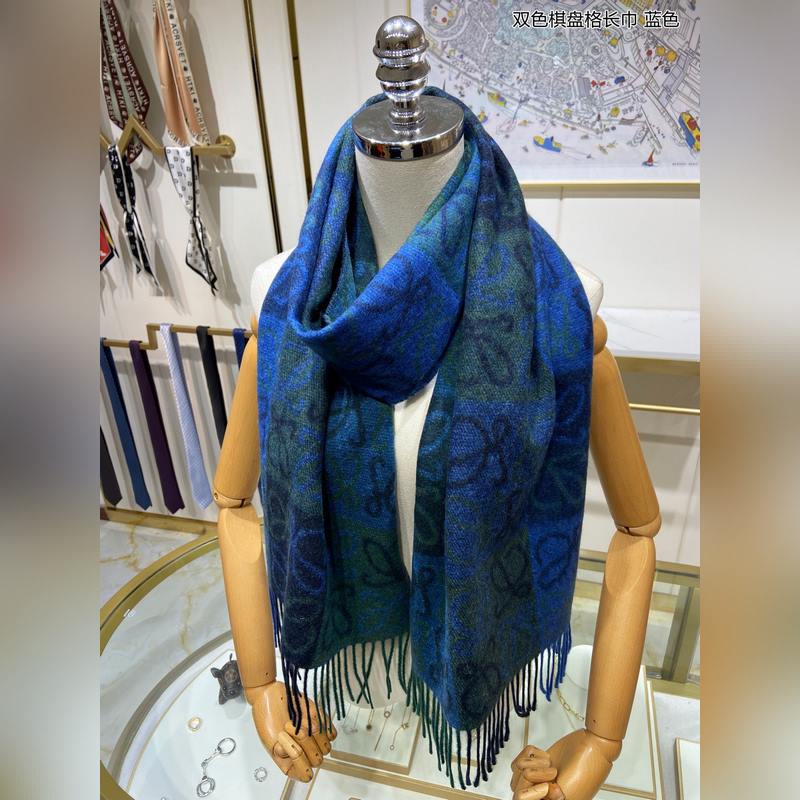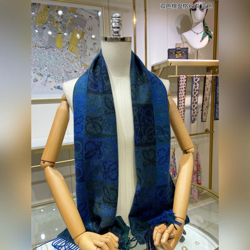 Top-grade original unisex Loewe two-color checkerboard long scarf. I was lucky to get this brand’s products. It’s really rare. We rarely place orders in China. The styles are really pitiful. As Spain’s top luxury brand, Loewe adheres to tradition, craftsmanship, and enthusiasm, exuding a unique Spanish aristocratic atmosphere. This scarf is a custom-made scarf for the window display of the Barcelona counter. The overall composition is the most classic LOGO style design of their brand. Specifications: 40x200cm, 90% wool + 10% cashmere