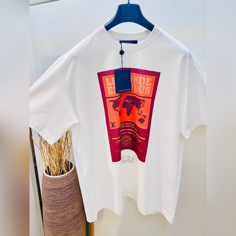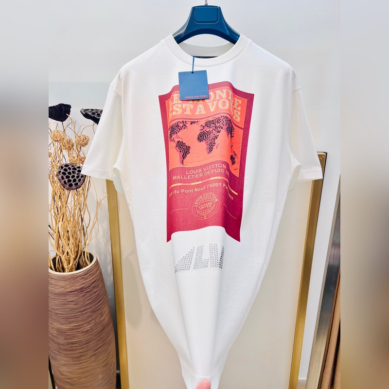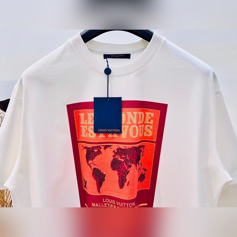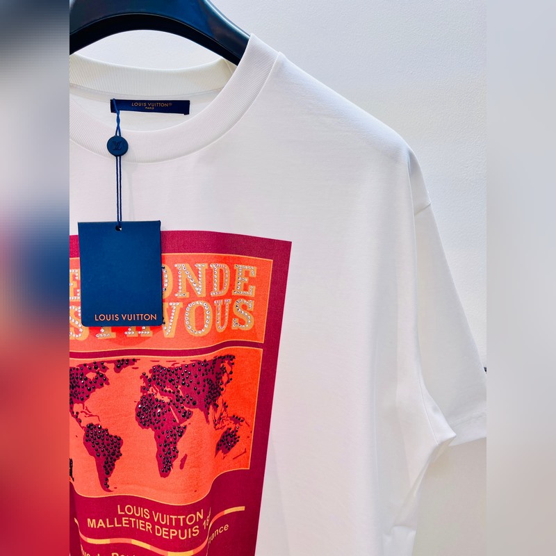 1V Louis 2025FW early spring “The World is You” theme heavyweight cotton direct-injection printed rhinestone front and back printed short-sleeved T-shirt.