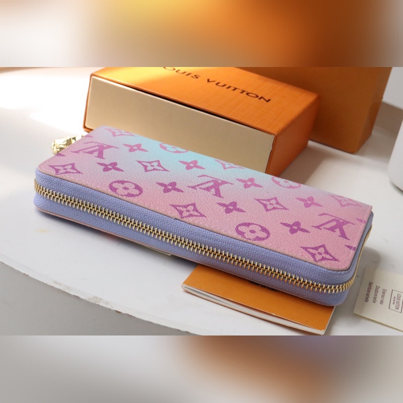 Zip Around Wallet The iconic zip around wallet in gradient Monogram canvas is part of the limited edition By The Pool accessories, leather goods and fashion collection for Summer 2023. The elegant wallet opens to reveal an organised interior with plenty of space for cards, notes and change. 19.5 x 10.5 x 2.5 cm
