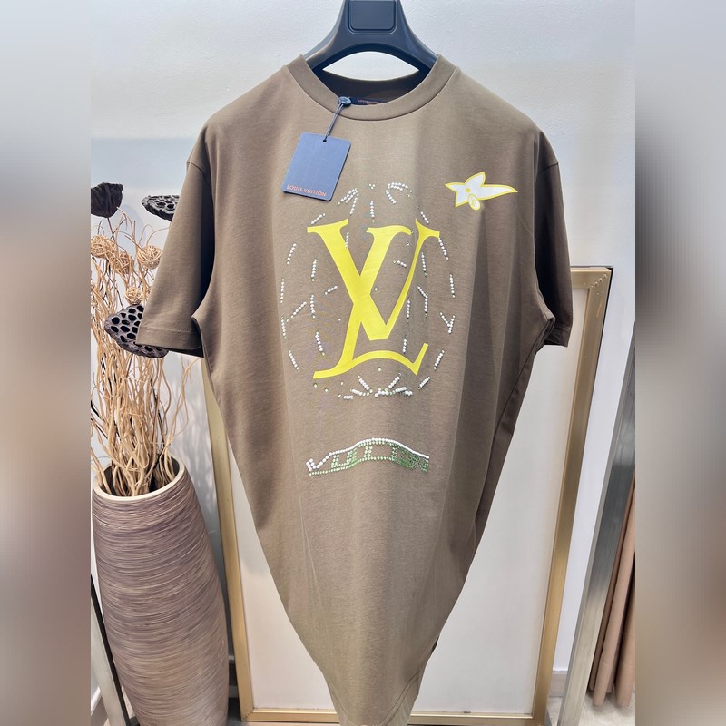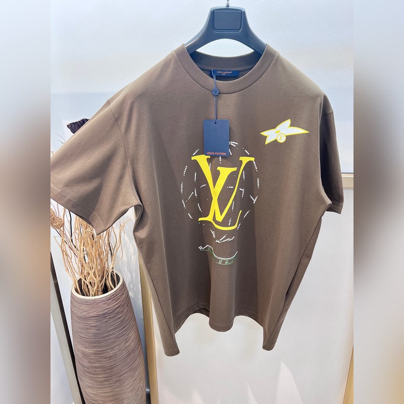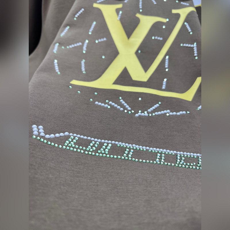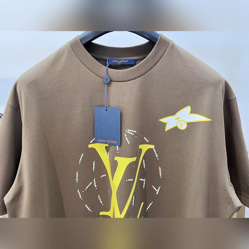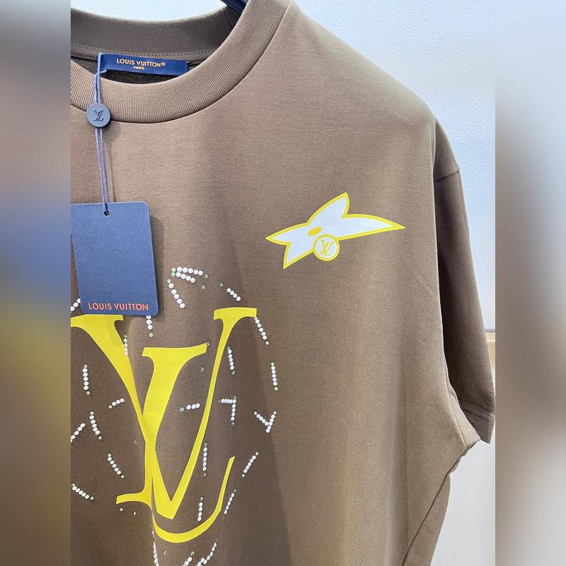 LV Louis 2025FW Early Spring Heavy Cotton Printed Rhinestone Half Sleeve T-shirt.