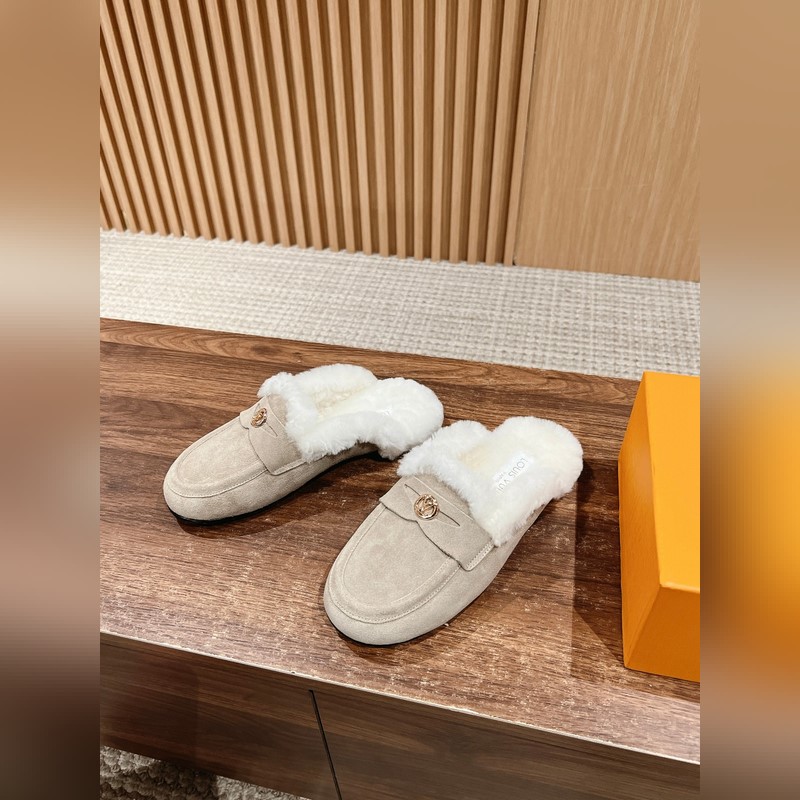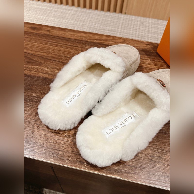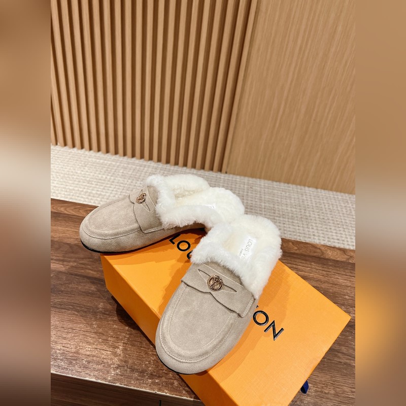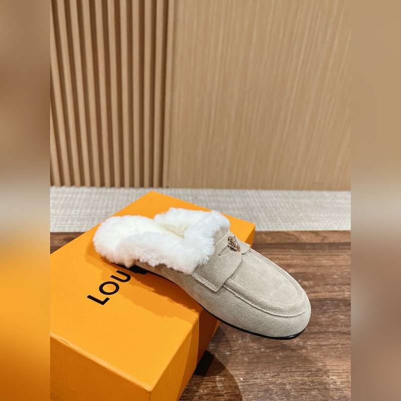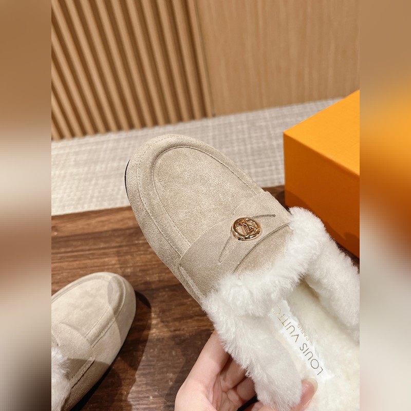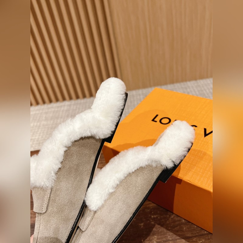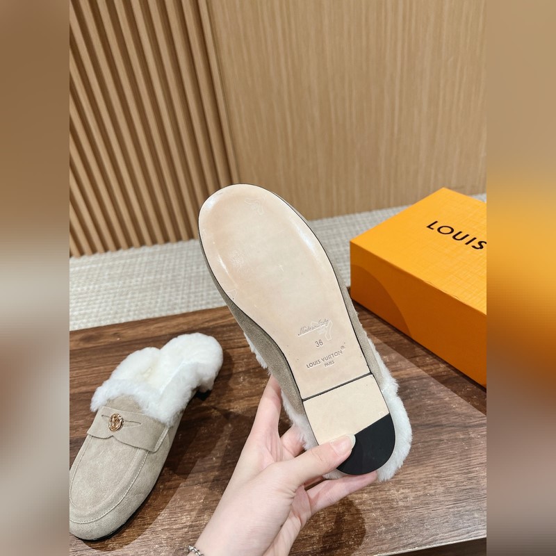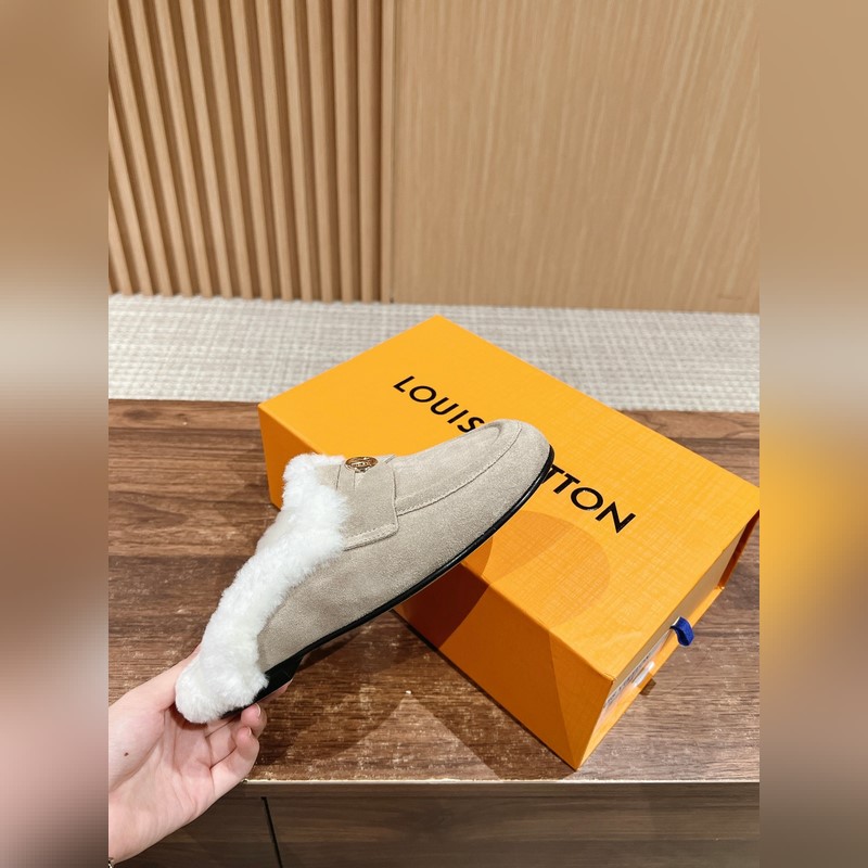 Louis Vuitton autumn and winter new wool half slippers, fur and leather, Mule Birken slippers, suede material, genuine leather outsole, size: 35-39 (40 custom-made, no return or exchange)