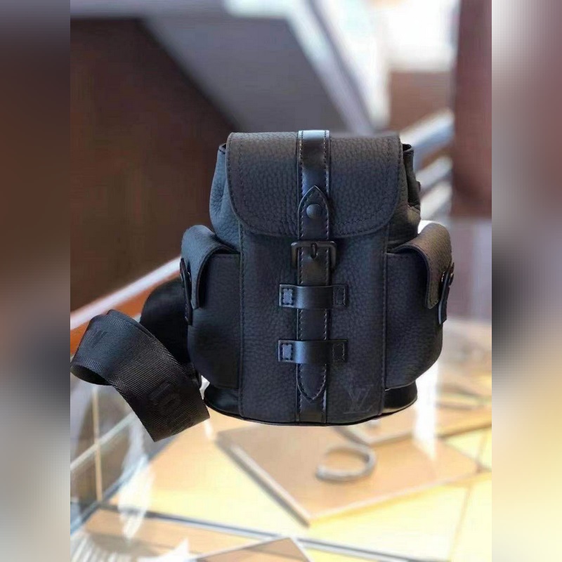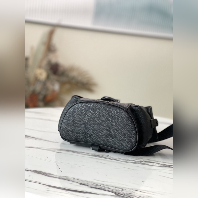 A condensed version of the classic Christopher backpack, made of fine Taurillon leather, with side pockets and spring buckles to accommodate wallets, mobile phones and other travel necessities, providing collectors with another trendy choice. The logo shoulder strap allows shoulder or crossbody options. Dimensions: 14 x 19.5 x 5 cm
