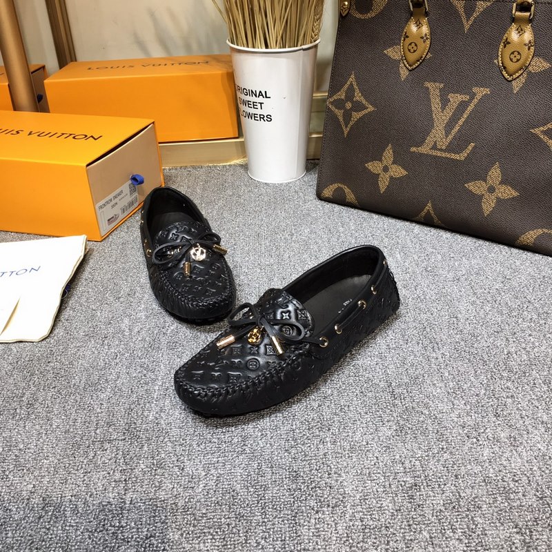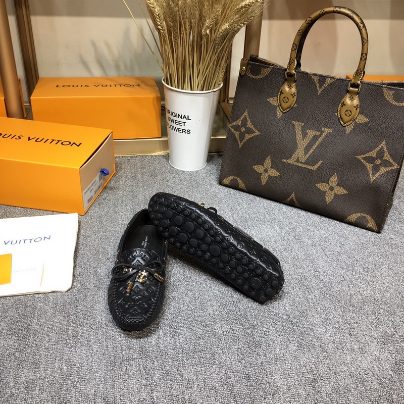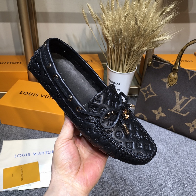 Louis Vuitton GLORIA flat loafers, made of high-quality cowhide, light and comfortable moccasin structure with hand-sewn upper, embellished with LV Cicle logo and inscribed shoelace ends. Decorated with bow LV logo hardware circle buckle, the version design is luxurious and atmospheric, perfectly interpreting the brand’s luxurious style. The lining is made of water-dyed cowhide, and the original A-grade rubber grain outsole, size: 35-42