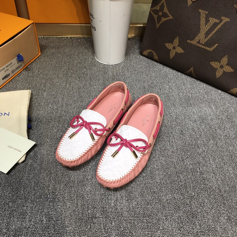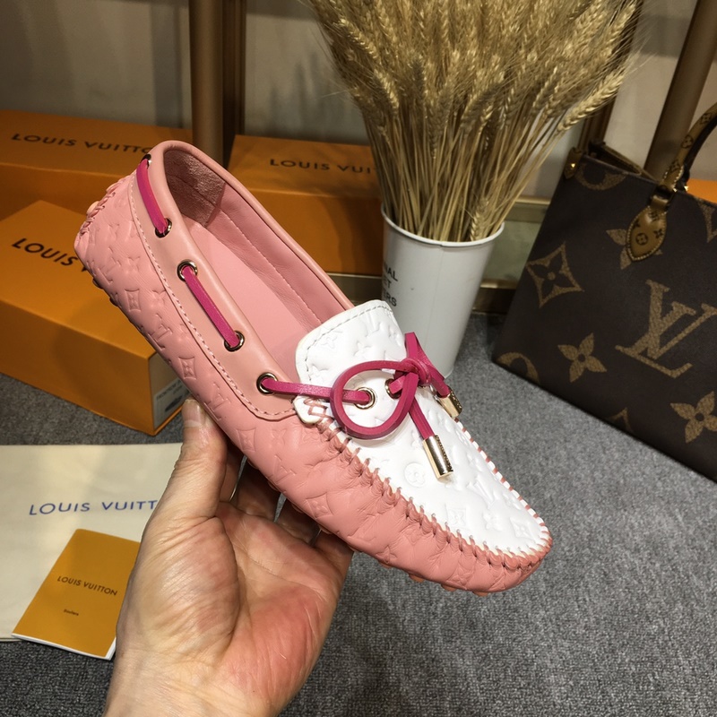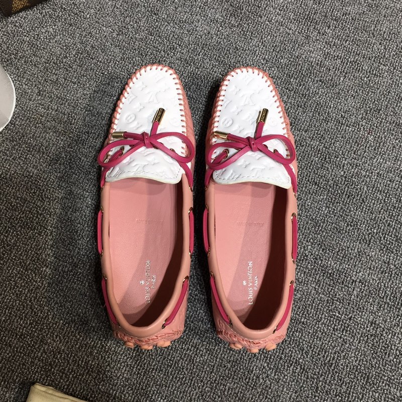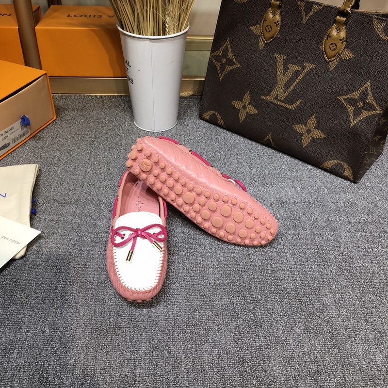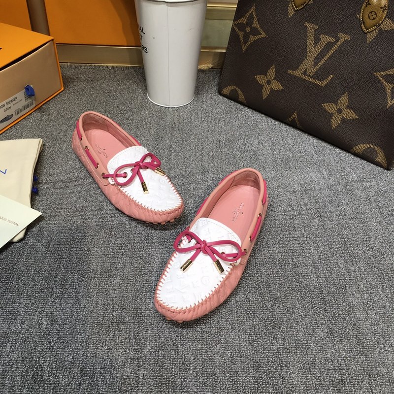 Louis Vuitton GLORIA flat loafers, made of high-quality cowhide, light and comfortable moccasin structure with hand-sewn upper, embellished with LV Cicle logo and inscribed shoelace ends. Decorated with bow LV logo hardware circle buckle, the version design is luxurious and atmospheric, perfectly interpreting the brand’s luxurious style. The lining is made of water-dyed cowhide, and the original A-grade rubber grain outsole, size: 35-42