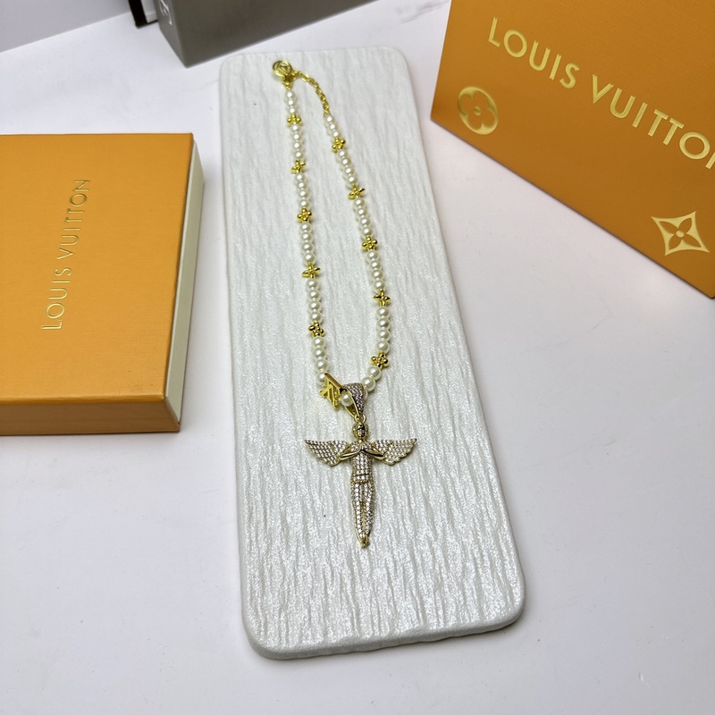 Louis Vuitton Gold Pearl Angel Necklace Original Trendy&Stylish Essential