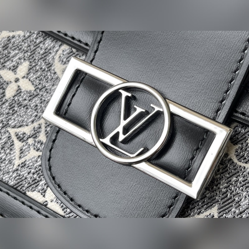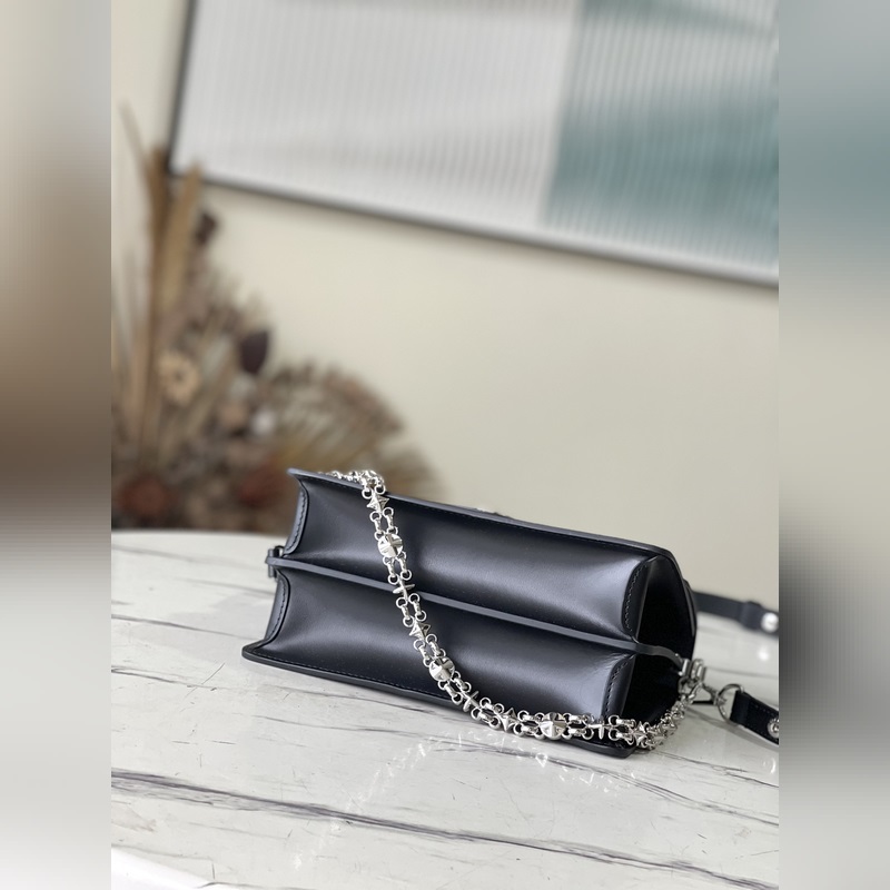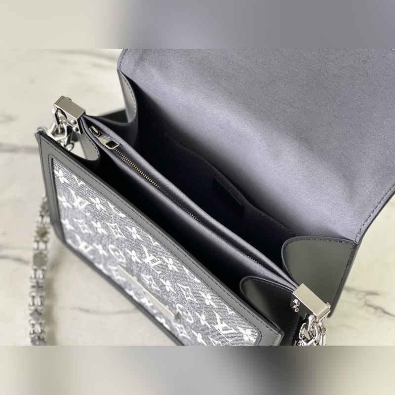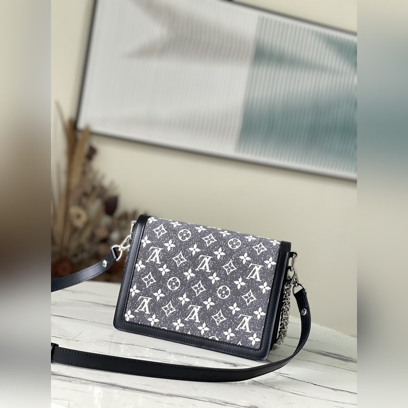 Style: M21458 Denim This medium-sized bag fits the fashion theme of the 2023 early spring show, showing the rough texture of jacquard denim. The leather trim and Gothic style chain inject a sharp contrast. The shoulder strap and chain are both detachable, making it easy to switch trendy styles. Dimensions: 25 x 17 x 10.5 cm