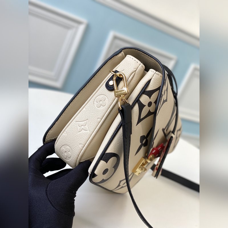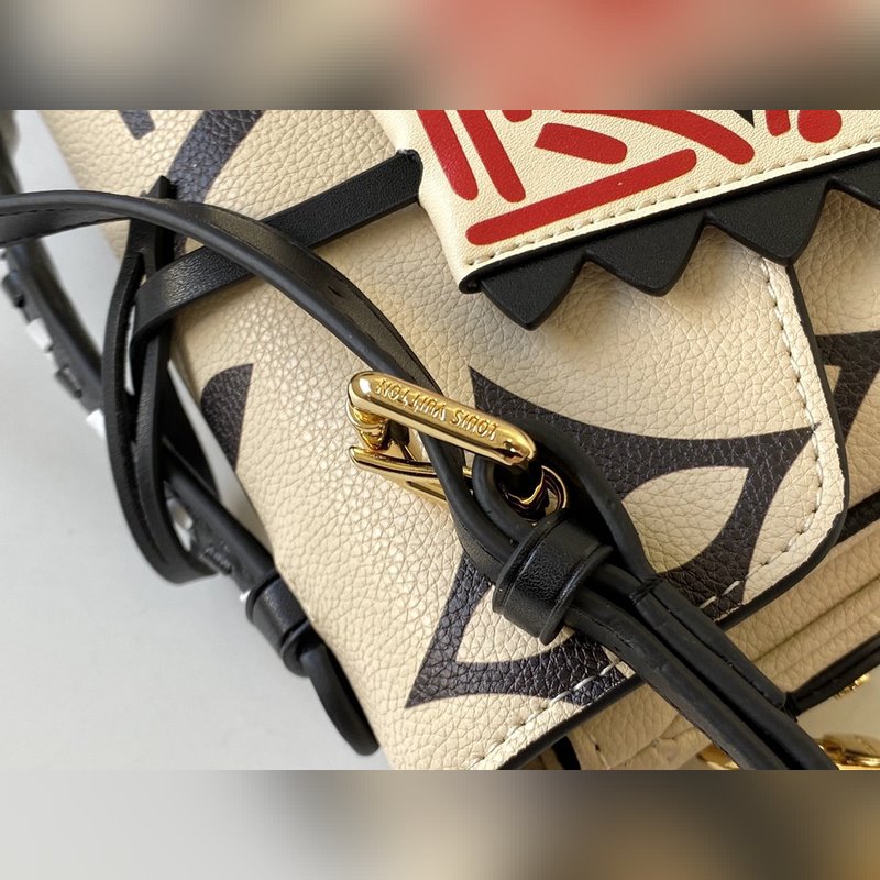 Oversized Monogram print in embossed leather, with top braided handles, graffiti-style charms and S-lock closure, instantly captures the visual focus. The detachable and adjustable shoulder strap allows for shoulder or crossbody options.