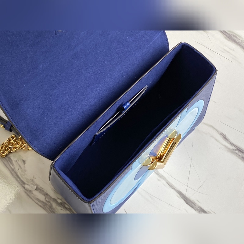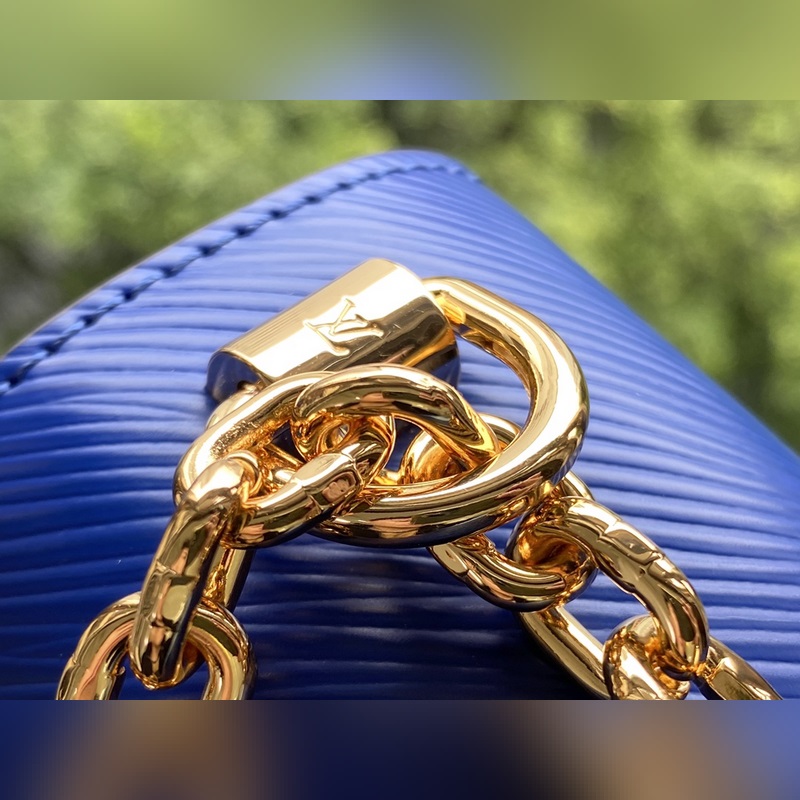 From the Game On capsule collection, a large heart print is presented in Epi leather, highlighting the eye-catching light of the central ist twist lock. Sliding chain shoulder strap with leather shoulder pad.