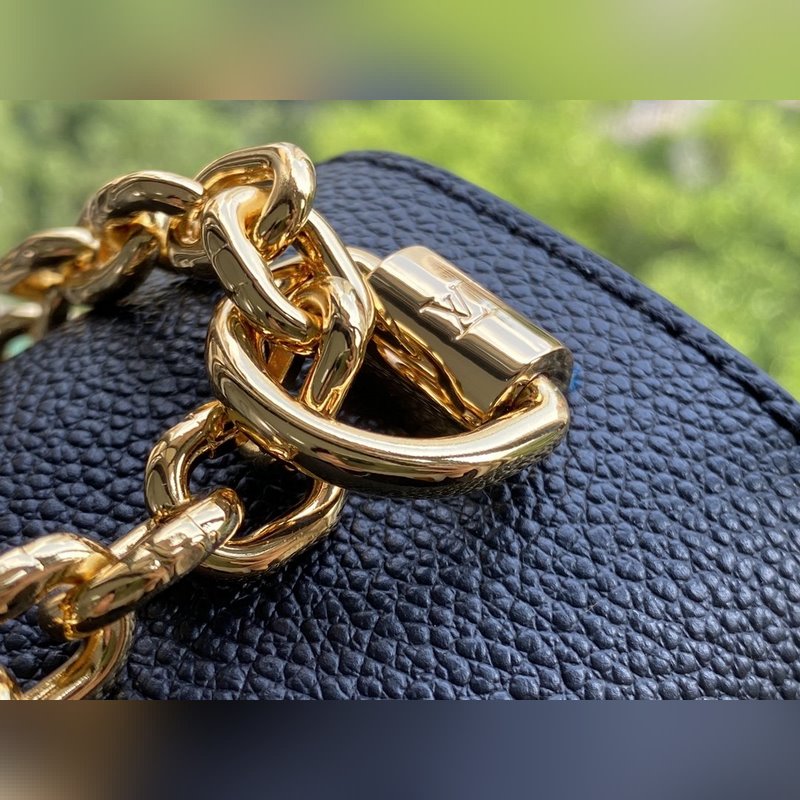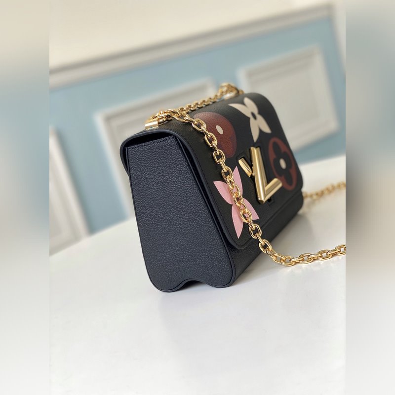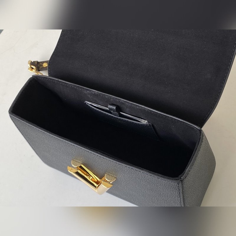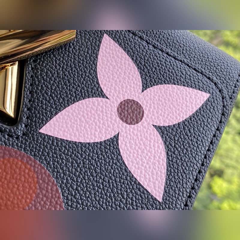 It is a Monogram leather flap, and you can embrace Monogram lovers. The ist twist lock and sliding chain collide with the elegant color. Size: 23.0 x 17.0 x 9.5 cm