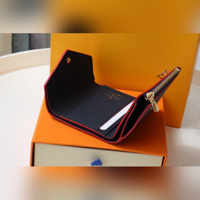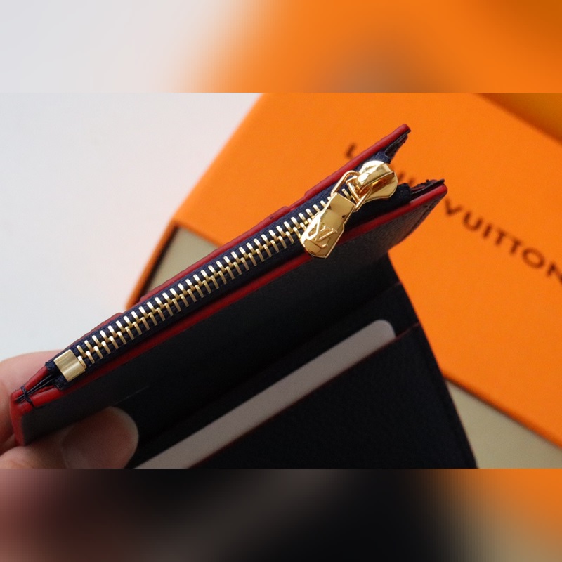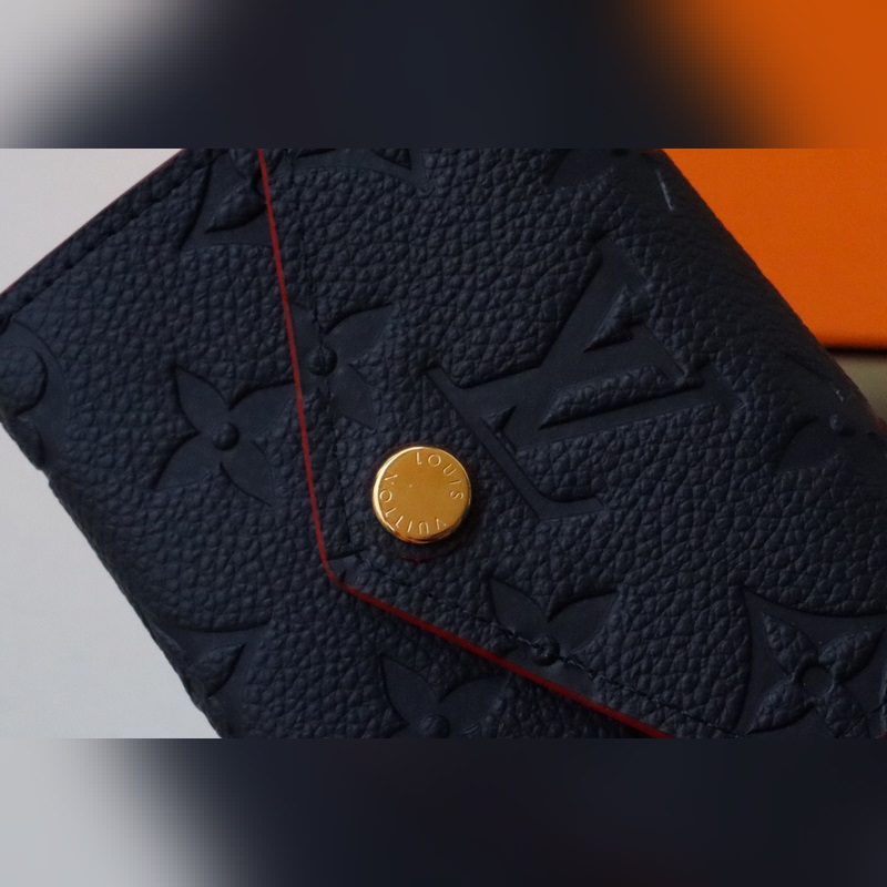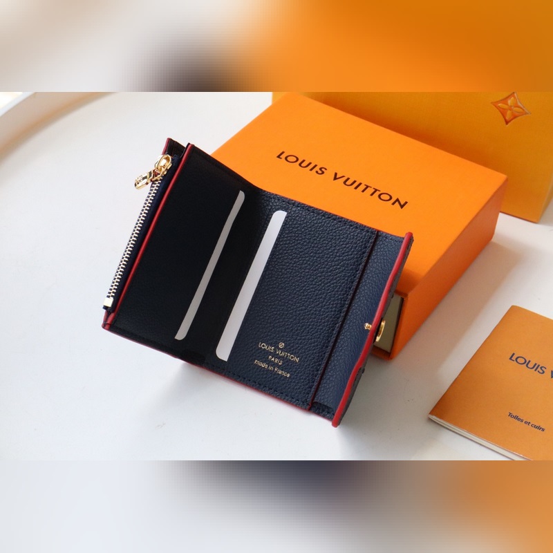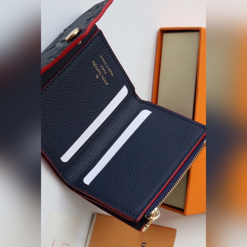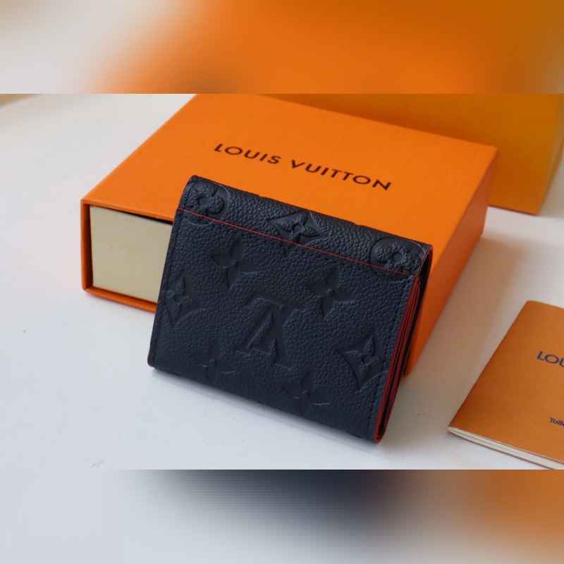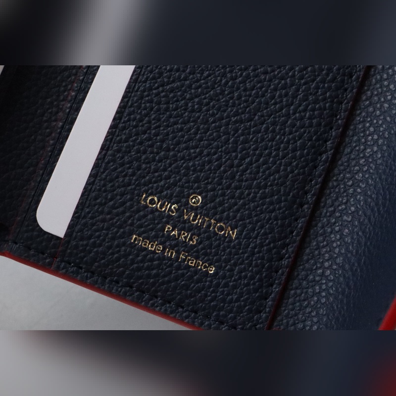 Black embossed leather Zoe short wallet made of soft grain leather Decorated with classic Louis Vuitton Monogram embossing Easily fits into any small bag Enough capacity for coins, banknotes and credit cards Exquisite and miniature carry-on accessory size 9.5×7.5x3cm