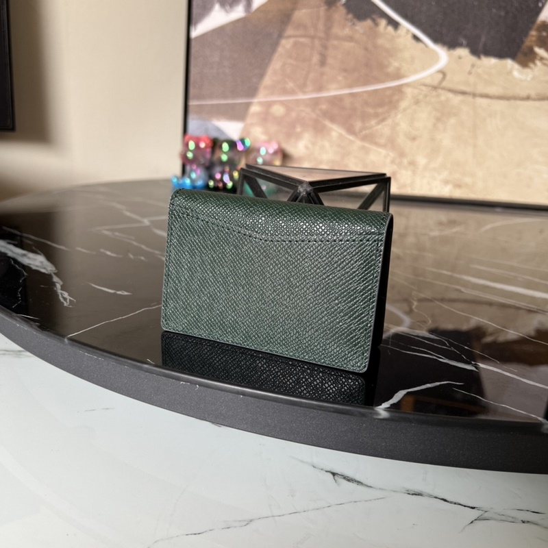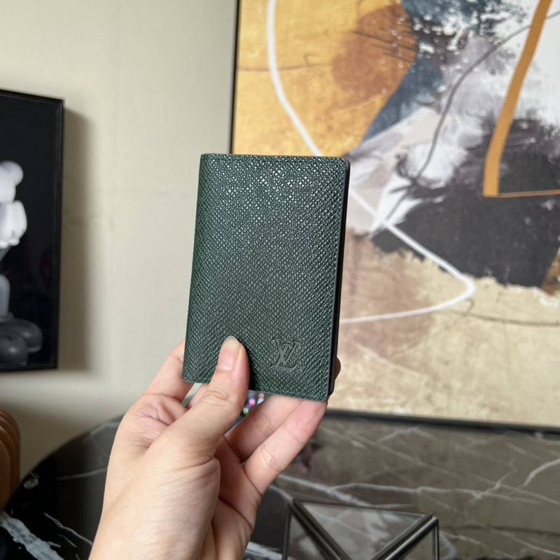 Top-grade original M81551 Saffiano Green Louis Vuitton classic pocket wallet shows the delicate texture of Ta ga cowhide leather, making the LV letters subtly marked in a corner. The card slots and inner compartments add functional details, and it can also be put into most pockets.