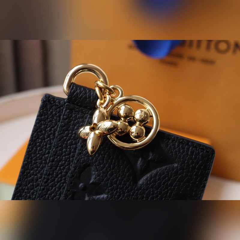 M82132 Black “Porto Cult LV Charm” made of soft Monogram Unplant leather featuring embossed Monogram pattern. It has 2 card slots on each side and 1 large slot in the middle, a total of 5 card slots, making it an item suitable for daily use. It is decorated with 2 Monogram Flower pattern pendants, adding a very feminine impression.