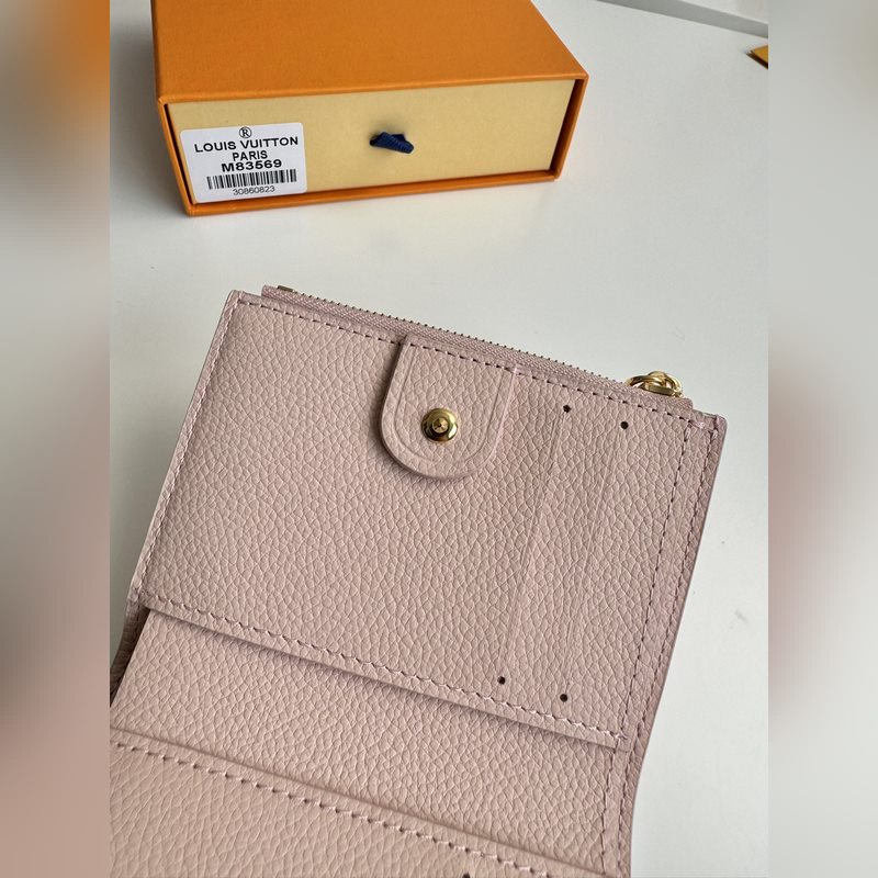 The compact Lisa wallet is reinterpreted in soft Monogram Empreinte leather, which is decorated with the Monogram pattern. This neat wallet is known for its mother-and-child coin pocket with zipper pull LV circle badge. There is a compartment for bills, two flat pockets and four card slots inside. Dimensions: 11.5×9×1.5cm