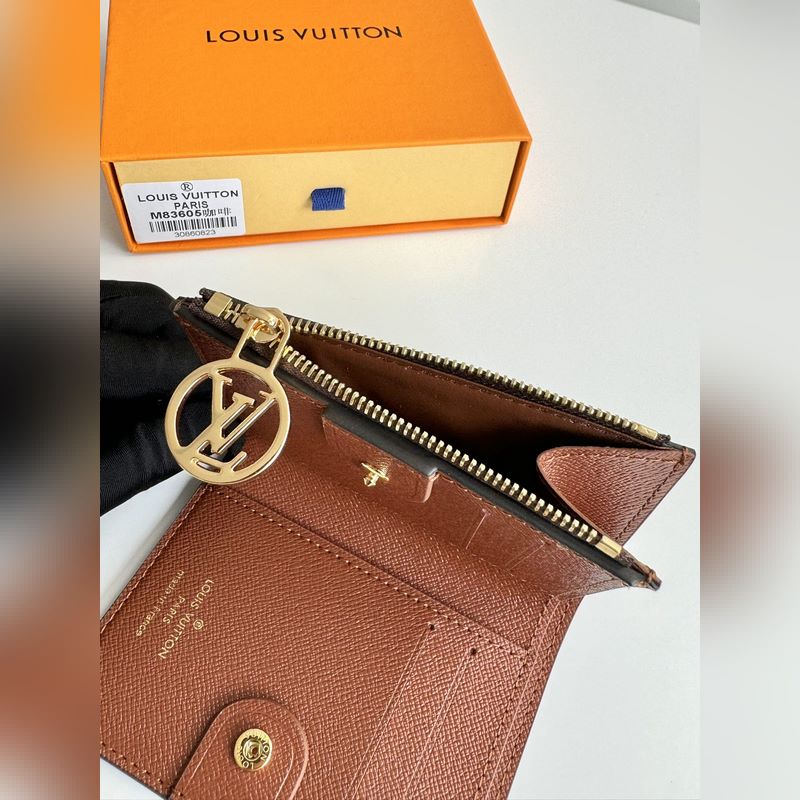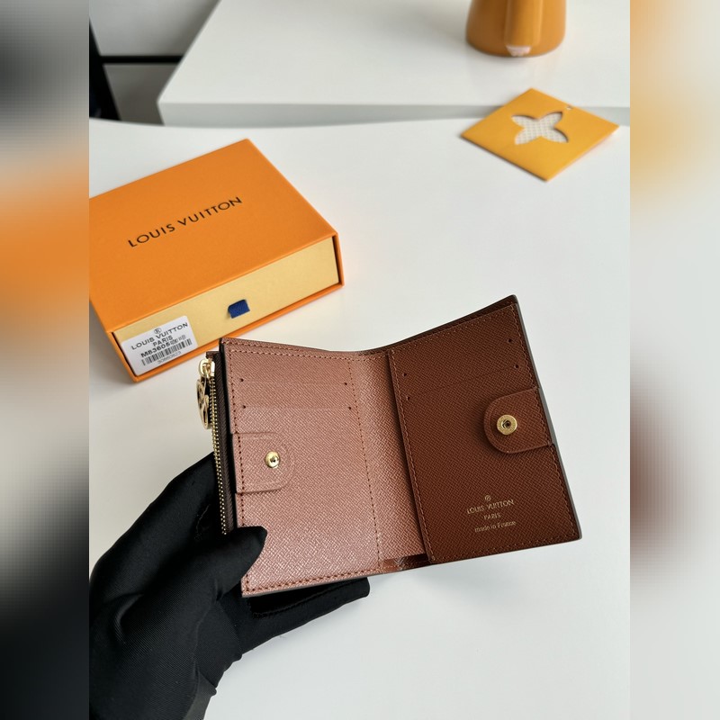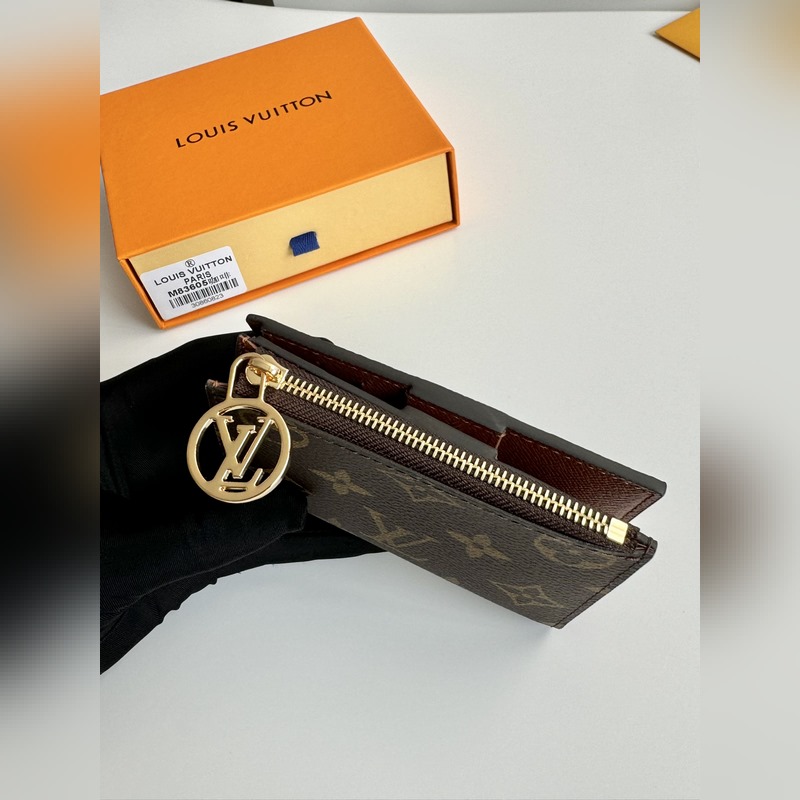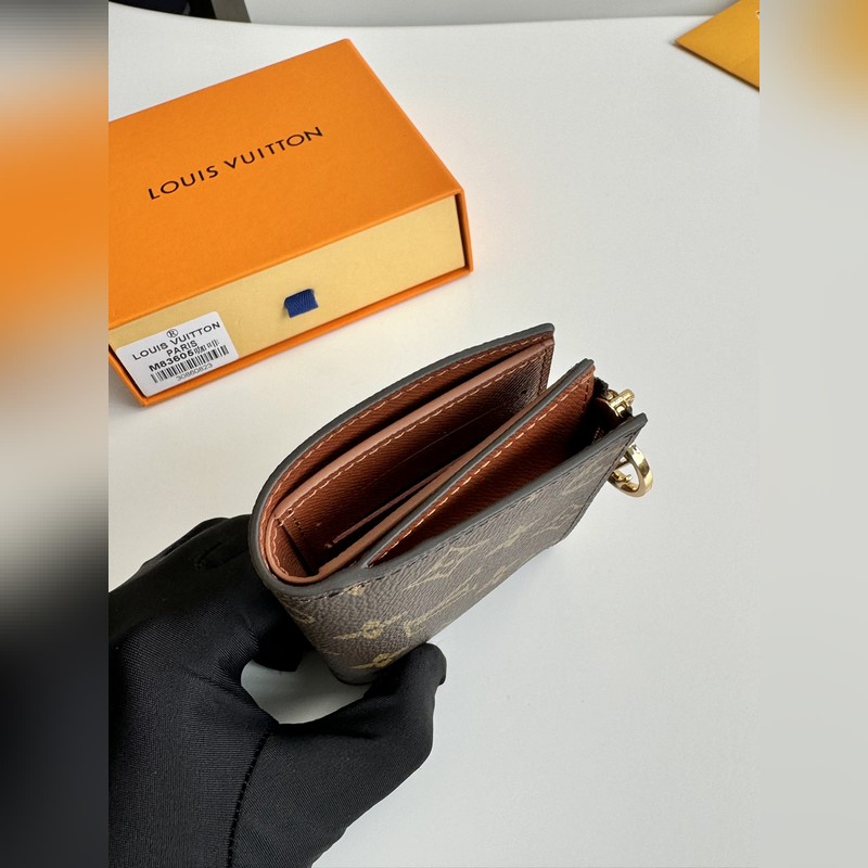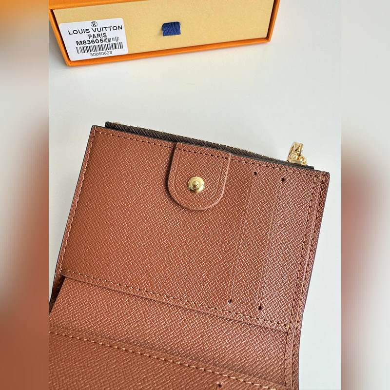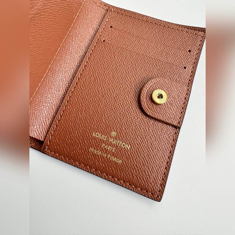 Overseas original M83605 coffee exclusive real shot Monogram canvas lisa wallet, open, you can see the light-colored leather lining. This detail complements the exquisite design of this compact wallet, which has various pockets and card slots. On one side, a zippered, sandwiched coin pocket is decorated with LV round zipper. Size: 11.5×9×1.5cm