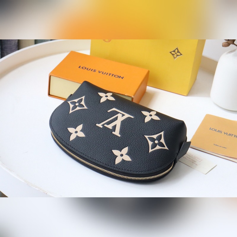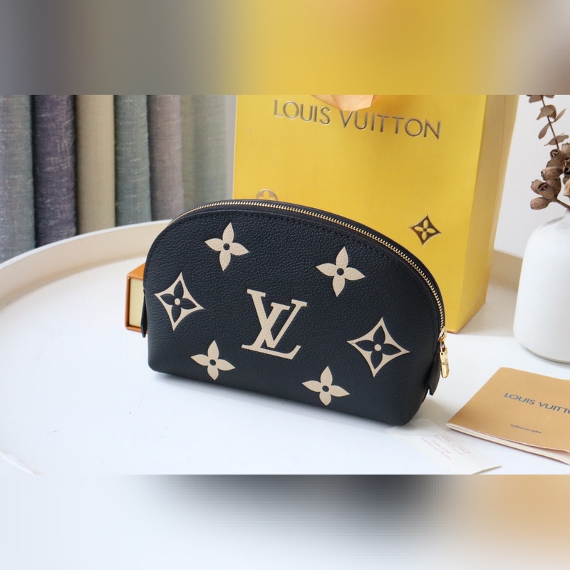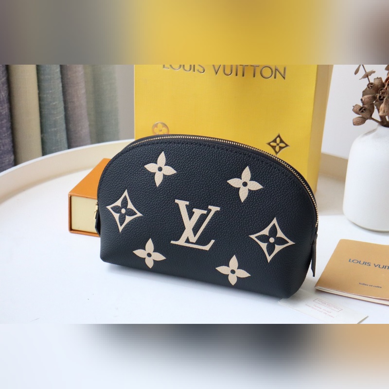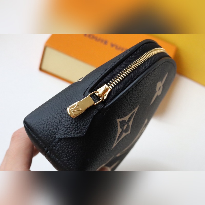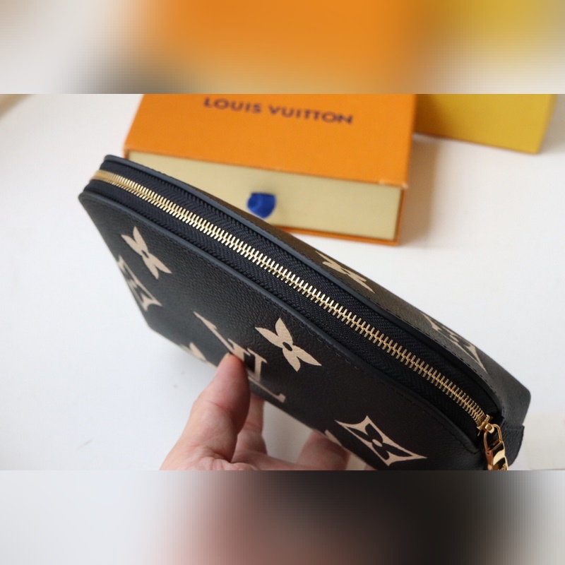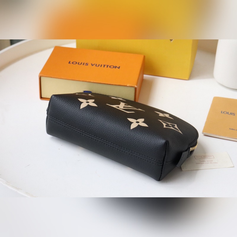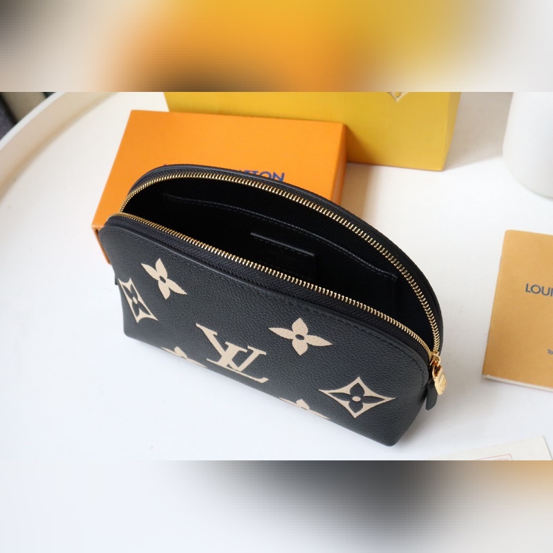 This small cosmetic bag is made of Monogram canvas and can be easily put into a handbag. The round bag body and flat bottom design make it easy to take and put cosmetics. Size: 17*12*6