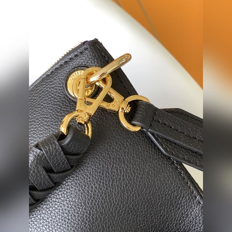 Top-quality original overseas M45522 black M45523 light brown This MONOGRAM canvas material, a new style of Melie handbag, a fashion must-have. Veau Cachemire leather material, full leather embossed woven wrist double pocket shopping bag. Lightweight and comfortable to carry, unique vertical narrow shape with modern style, zipper pocket with metal engraved zipper head, more personalized style. Size: 33x16x30cm