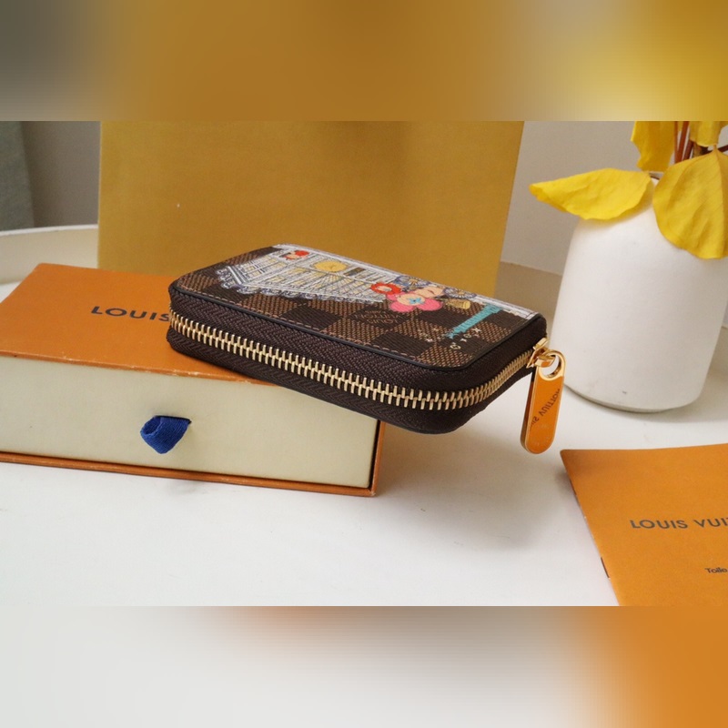 The 2022 collection features a limited edition Zippy coin purse that celebrates Louis Vuitton’s travel heritage. Colorful prints document the mascot’s visit to the Soho boutique in New York City, alongside the city’s iconic yellow taxis. The canvas silhouette is zipped and lined with leather.
