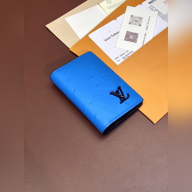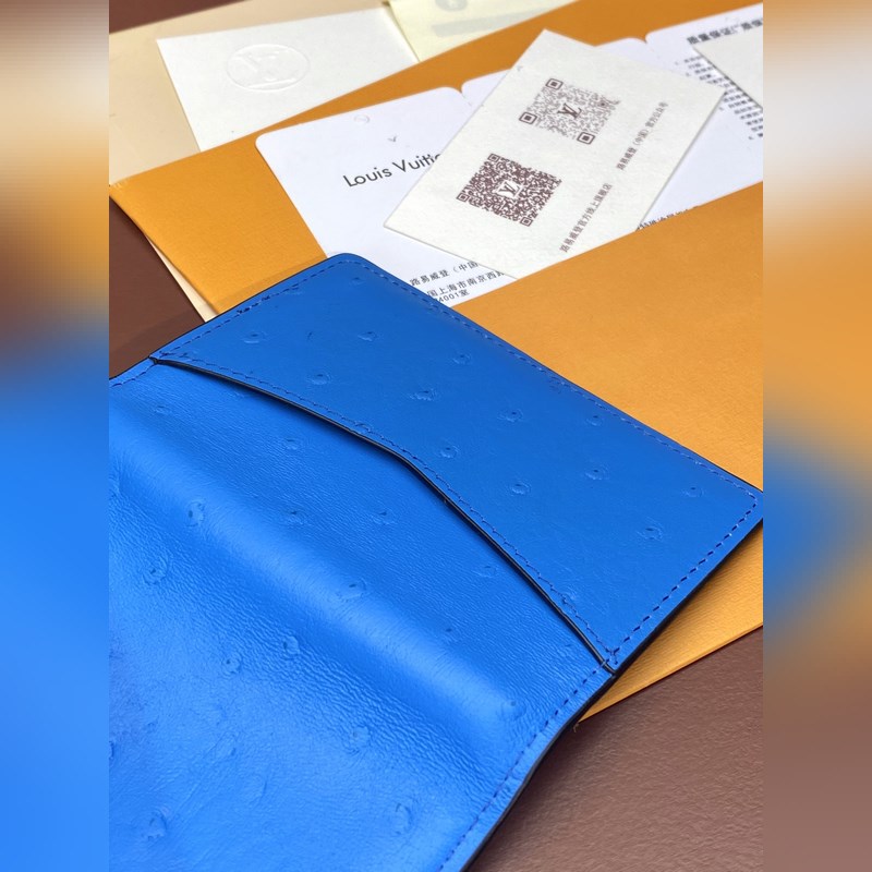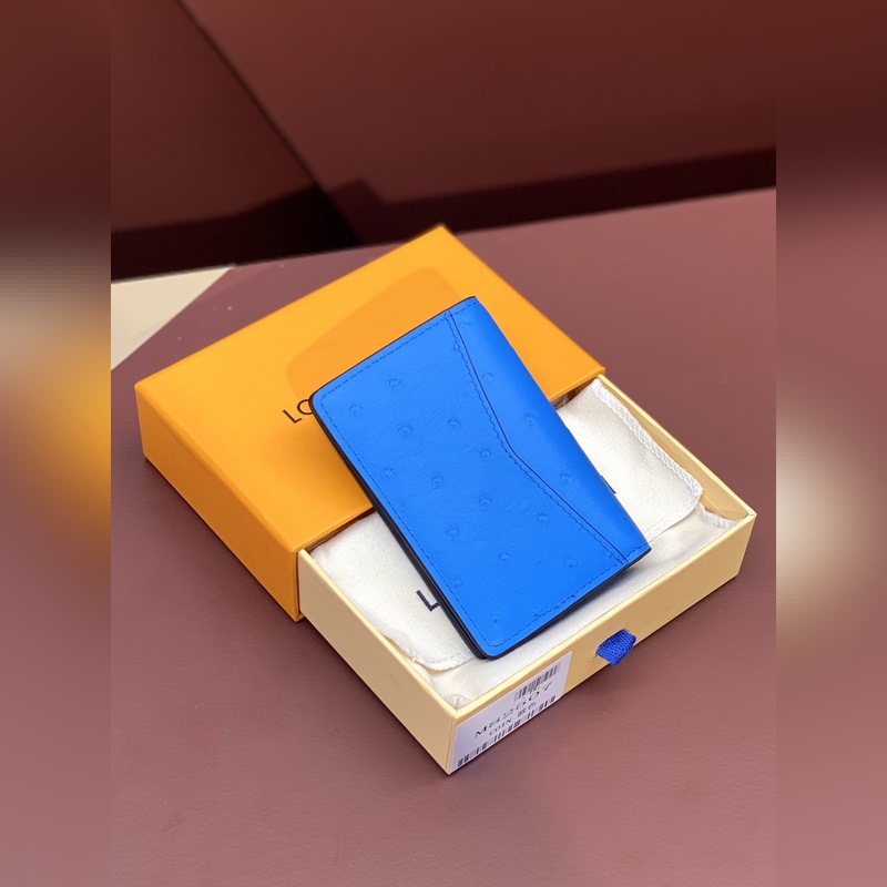 N82507 Blue ostrich pattern, card holder This card holder is made of gorgeous ostrich leather, showing Louis Vuitton’s profound attainments in leather making. Bright colors inject high vitality, and the card sandwich, compartment and zipper coin pocket are rich in functional design. 8 x 11 x 1 cm (length x height x width).