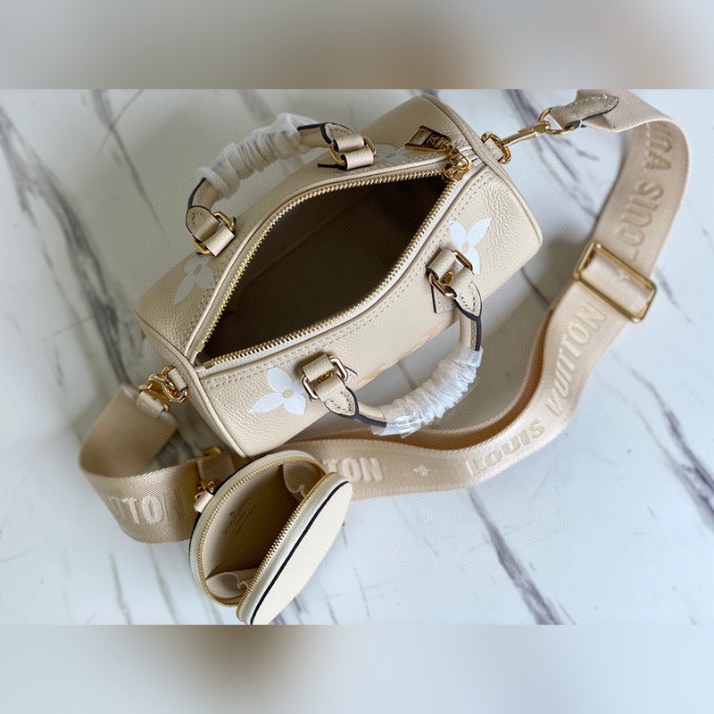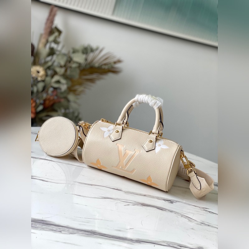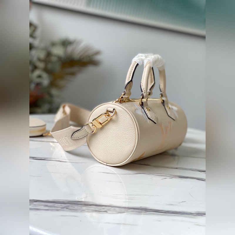 The classic Papillon bag silhouette is recreated in miniature in Monogram Empreinte leather with a Monogram gradient print. The removable jacquard shoulder strap conveys a sporty feel, while the removable round coin pocket adds a touch of fun. Dimensions: 20 x 10 x 10 cm