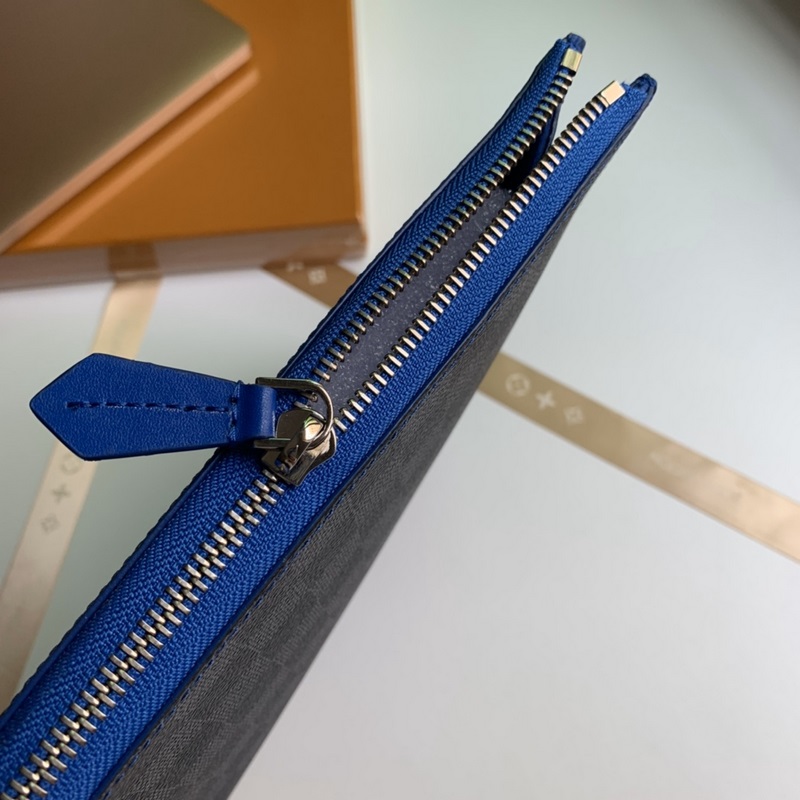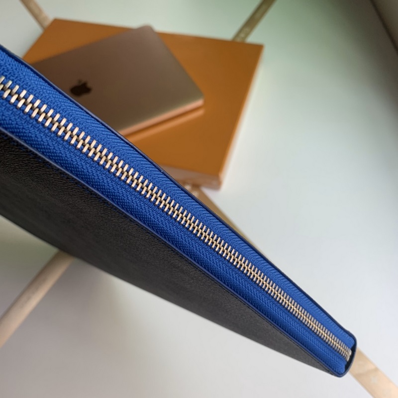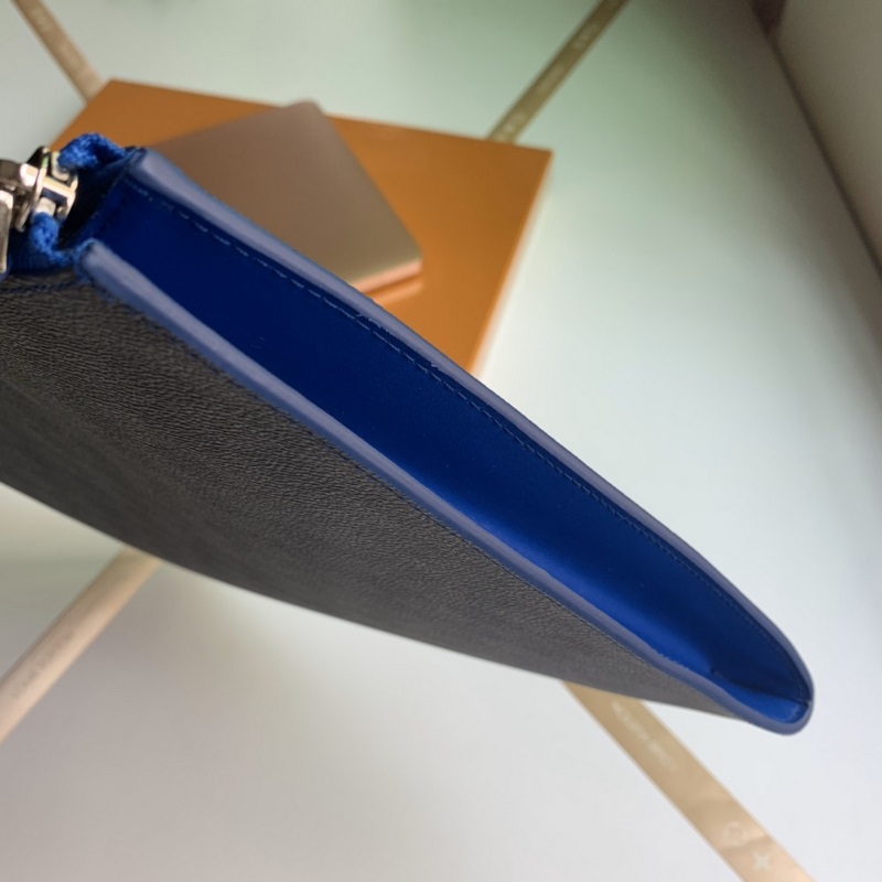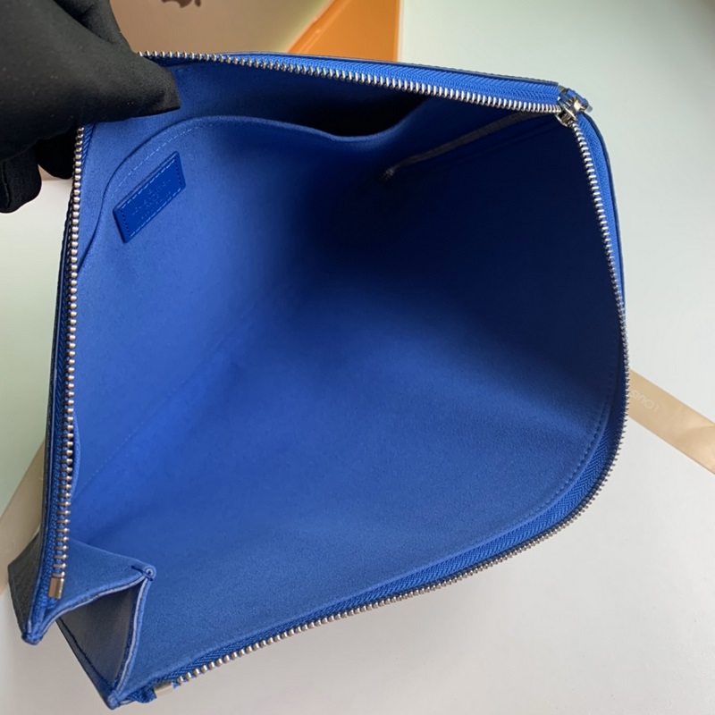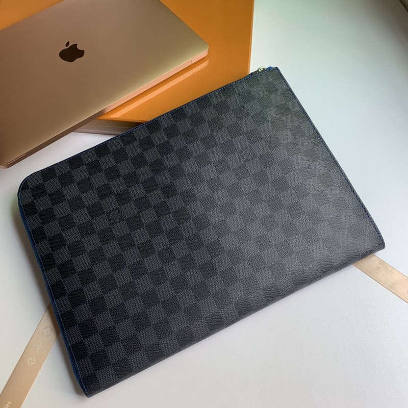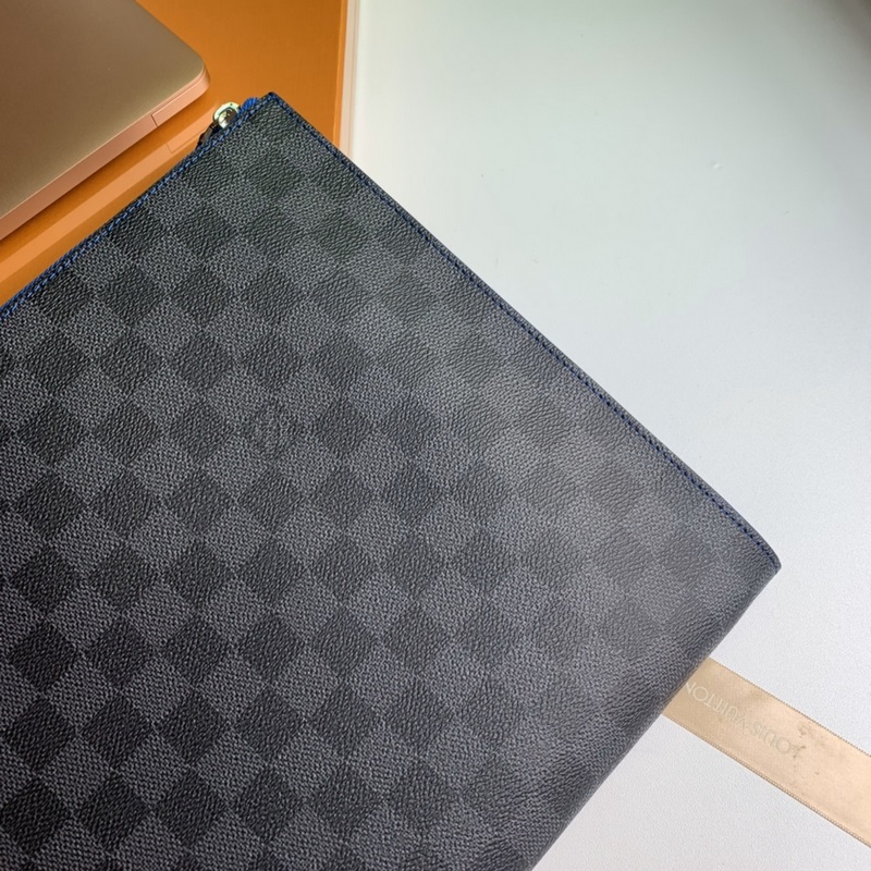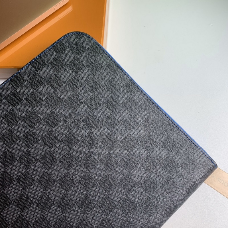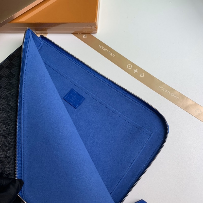 Model No. N64032, overseas top-grade original, Pochette Jour large handbag is made of Damier Graphite canvas, a large version of Louis Vuitton briefcase. The unique L-shaped zipper opens to reveal an electric blue cowhide lining, which contrasts sharply with the black and gray exterior. This handbag has a large capacity and can easily accommodate a laptop, or it can be used as a handbag alone. Size 35.0 x 25.0 x 2.0