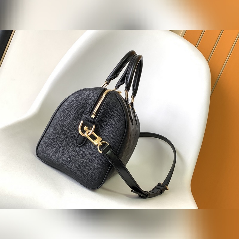 M59273 apricot M58951 black Speedy Bandoulière 25 handbags reappeared in the Wild at Heart capsule series in the autumn of 2025, with oversized LV letters embossed on Monogram Empreinte leather, and a detachable shoulder strap to add a crossbody option. Dimensions: 25.0 x 19.0 x 15.0 cm (length x height x width).