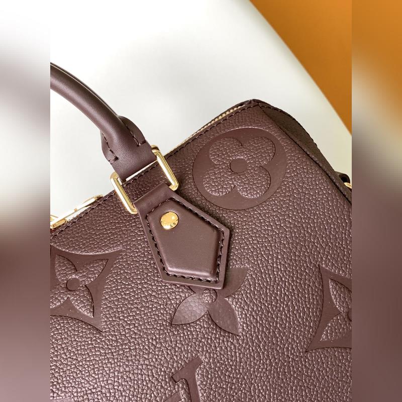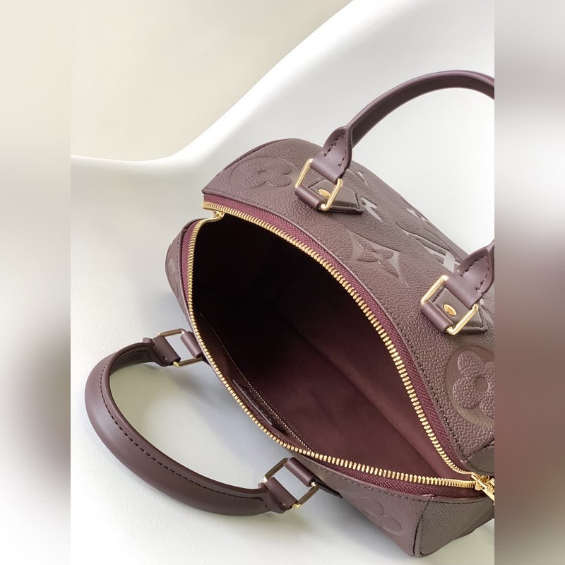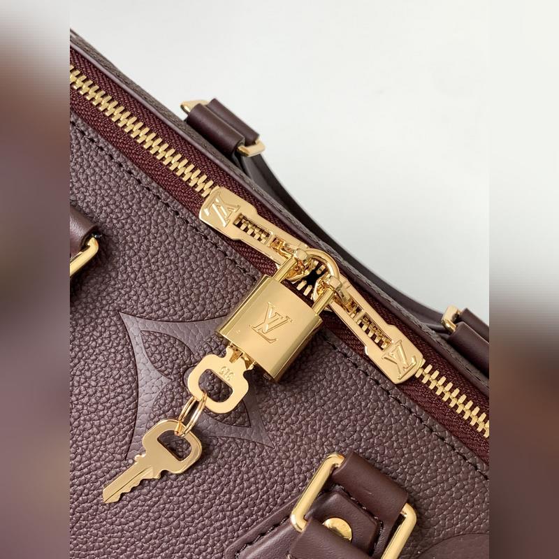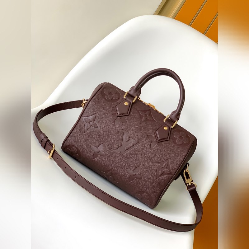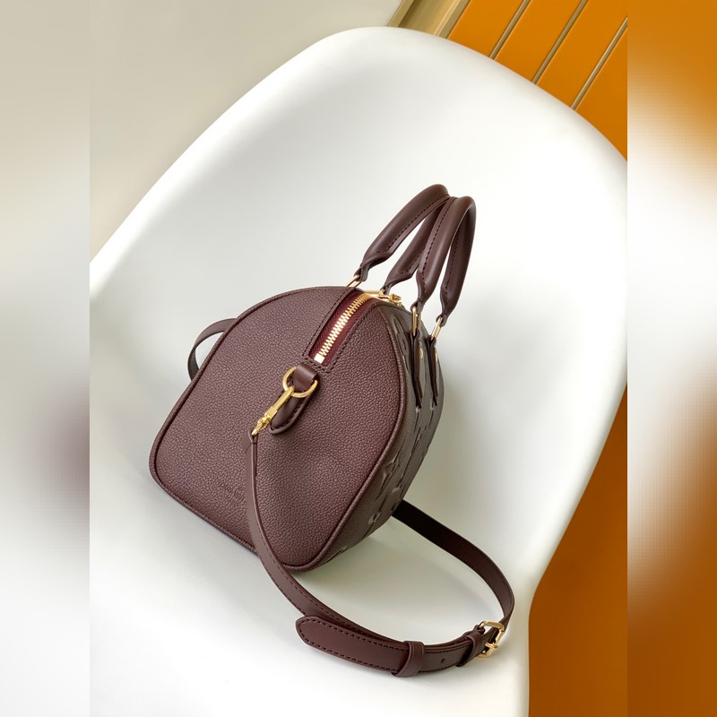 M59273 Apricot M58951 Black Jujube Red Speedy Bandoulière 25 handbags reappeared in the Wild at Heart capsule series in the fall of 2025, with oversized LV letters embossed on Monogram Empreinte leather, and a detachable shoulder strap to add a crossbody option. Dimensions: 25.0 x 19.0 x 15.0 cm (length x height x width).